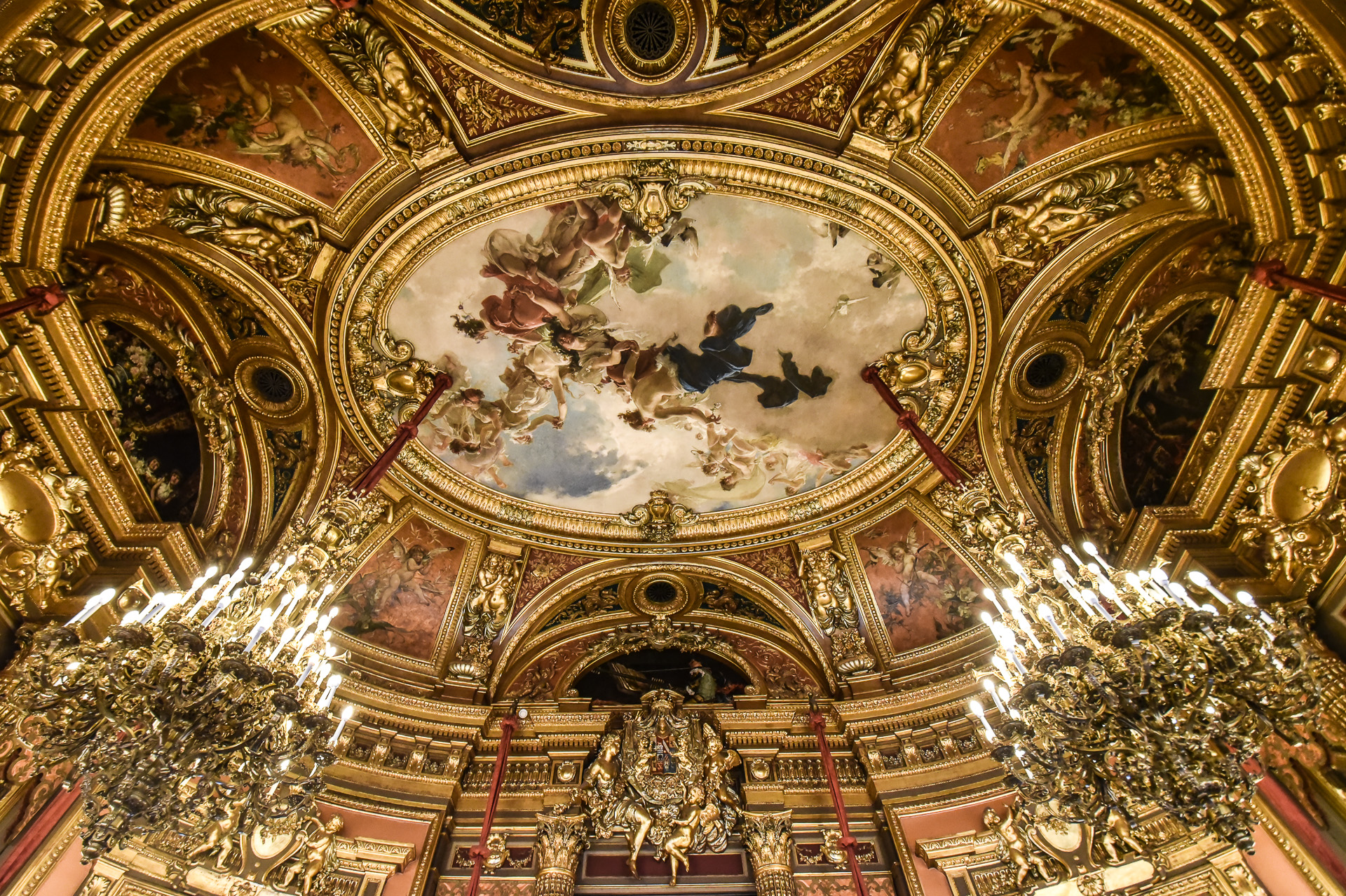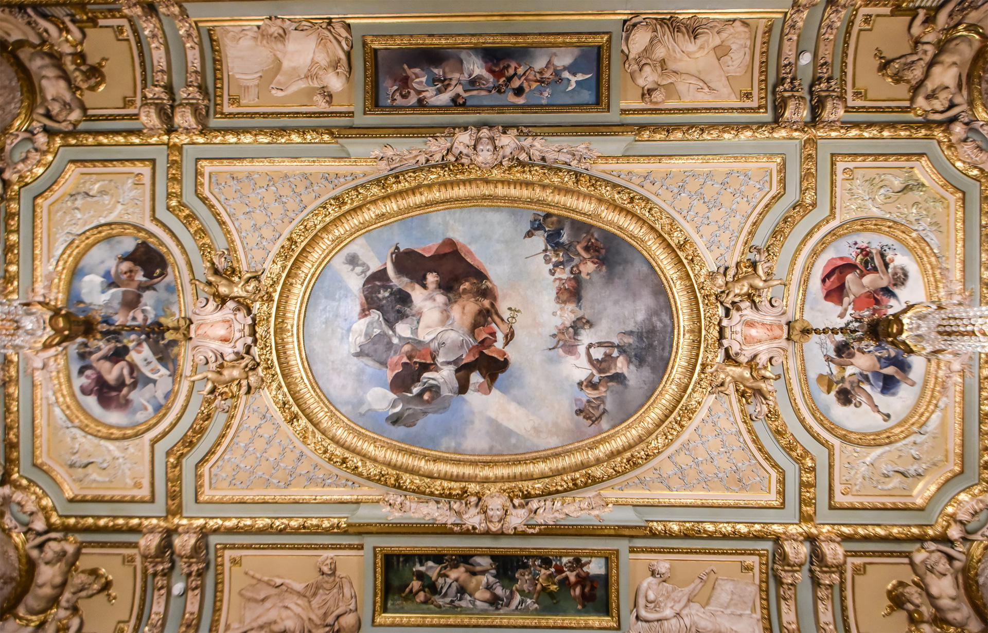 Además de sus grandes lámparas, su techo cargado de frescos, bañado por un acogedor color dorado, al que hay que dedicarle un buen rato para observar todos los detalles.