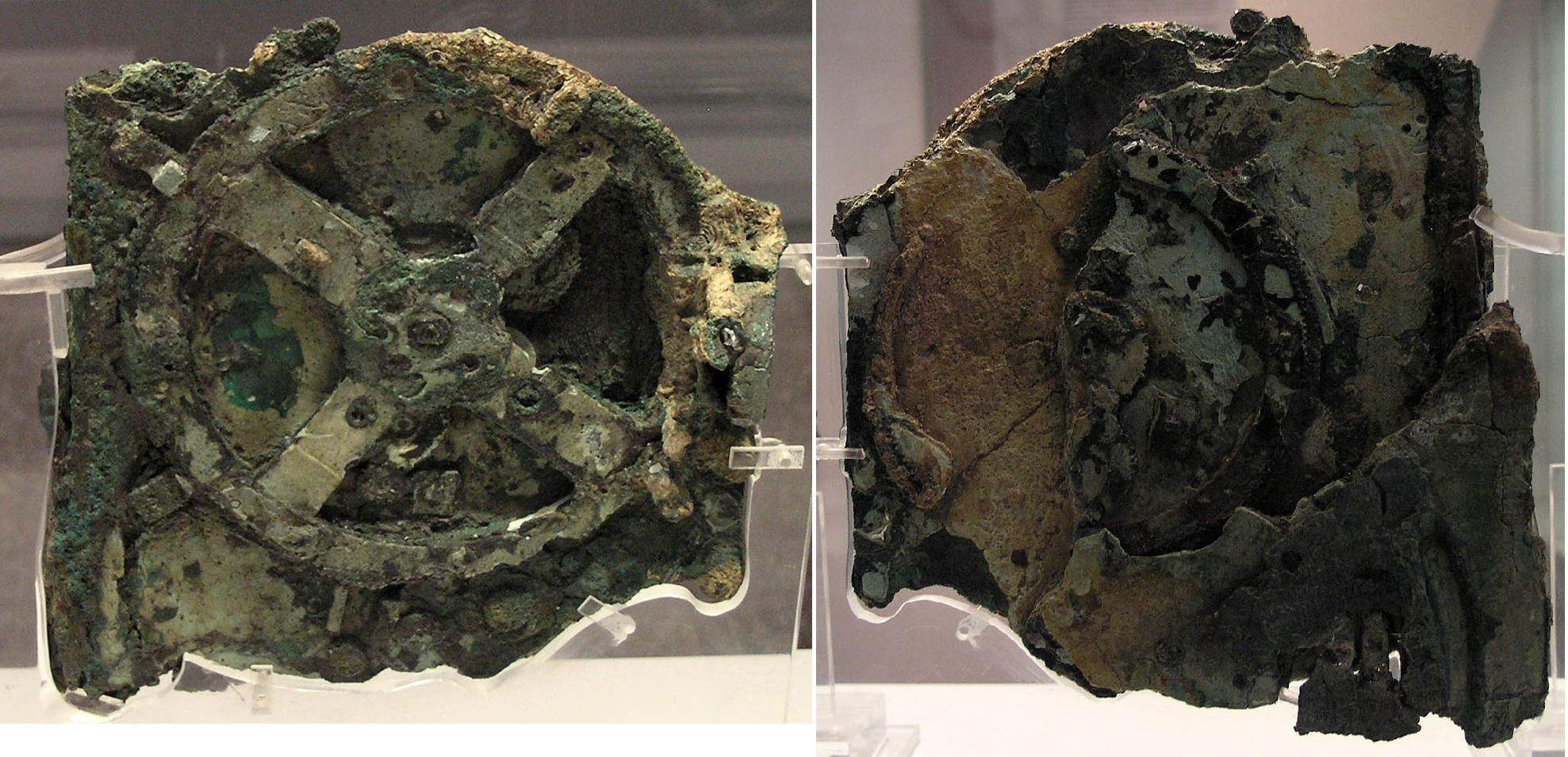 Data de entre los años 150 a.C. y 100 a.C y es considerado como la primera calculadora científica puesto que predice posiciones astronómicas y eclipses, así como la fecha exacta de seis certámenes griegos antiguos como los Juegos de Olimpia. En abril de 1900, unos buzos que recolectaban esponjas se toparon con un naufragio frente a la isla griega de Antikythera del que recuperaron estatuas, monedas y este mecanismo, que pasó inadvertido durante dos años. El 1902, un arqueólogo descubrió que ese bulto de bronce corroído y madera tenía un engranaje embebido.
