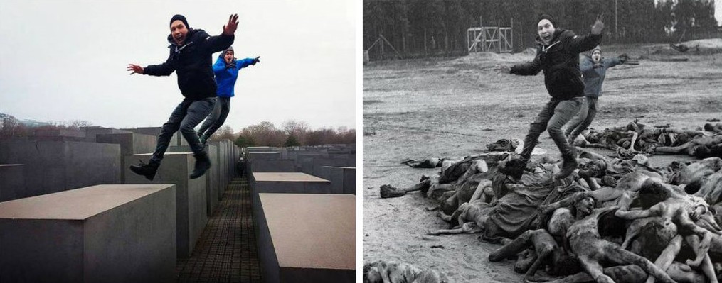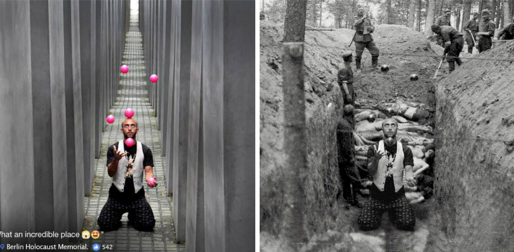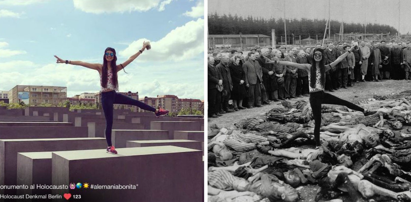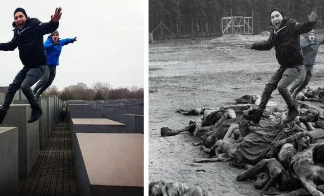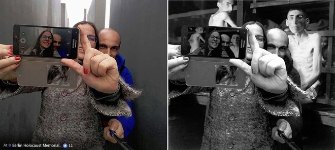 Un artista israelí publicó un proyecto en internet en el que combina fotos desenfadadas de turistas en el monumento a las víctimas del Holocausto de Berlín con crudas imágenes de archivo de campos de exterminio nazis. "He observado en los últimos años un interesante fenómeno en el monumento al Holocausto: mucha gente lo toma como el fondo para sus fotos en Facebook, Instragram, Tinder oder Grindr", asegura Shahak Shapira en su perfil de Facebook al anunciar su proyecto, "Yolocaust". Sharipa ha dedicado el proyecto a su "neonazi favorito", el político de Alternativa para Alemania (AfD) Björn Höcke, que ha generado una gran polémica al calificar de "vergüenza" este mismo emblemático monumento