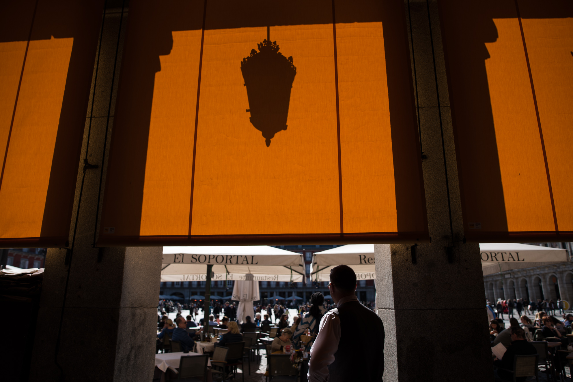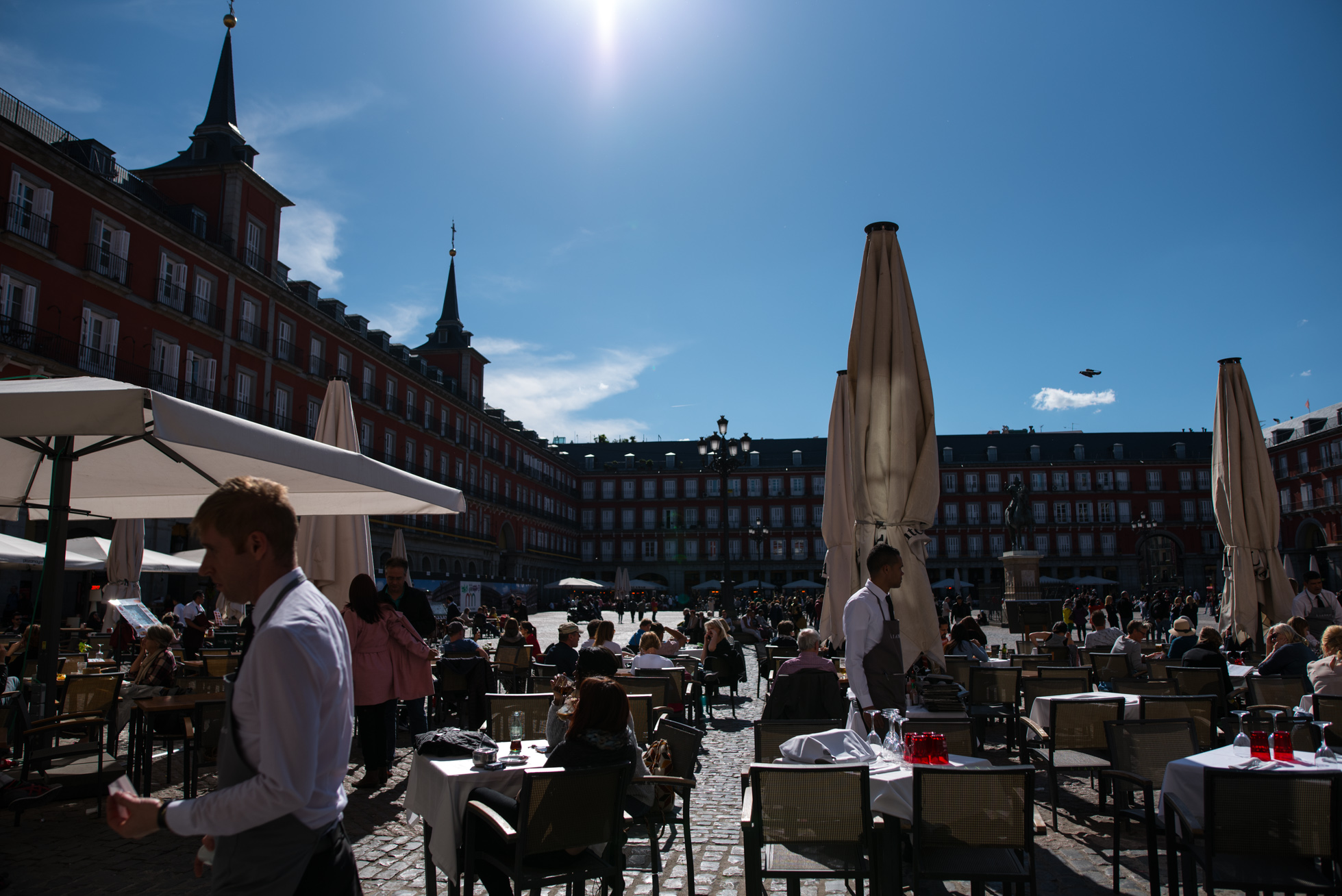 Las terrazas, siempre llenas de turistas o madrileños son otro de los atractivos de la Plaza Mayor de Madrid.