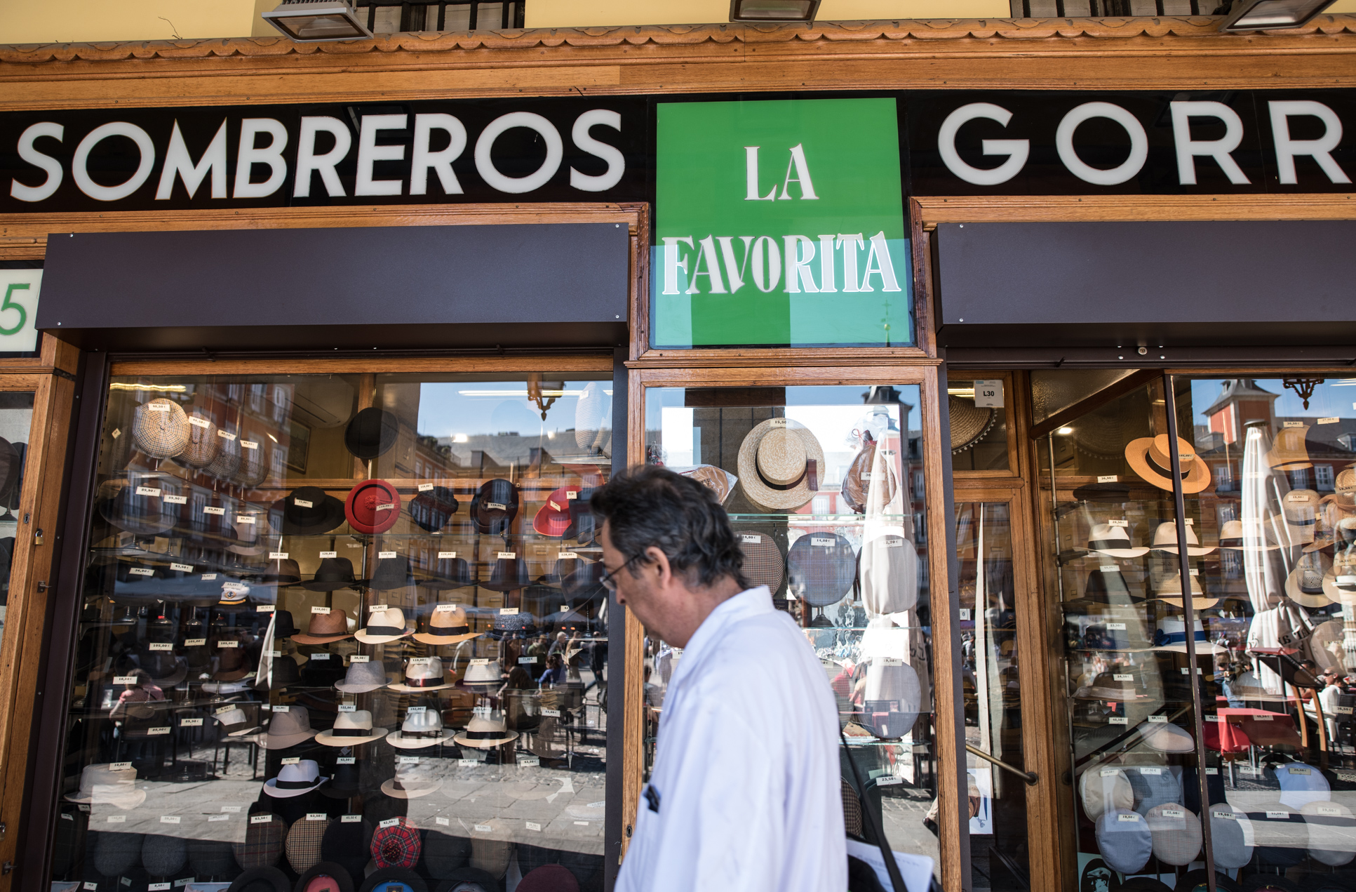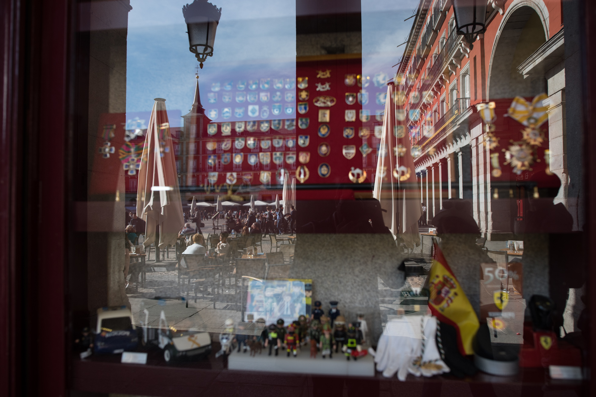 Los establecimientos bajo los soportales de la Plaza Mayor son tan diferentes como curiosos. Pasan de una temática filatélica a tabernas castizas, tiendas de sombreros o souvenirs para turistas.