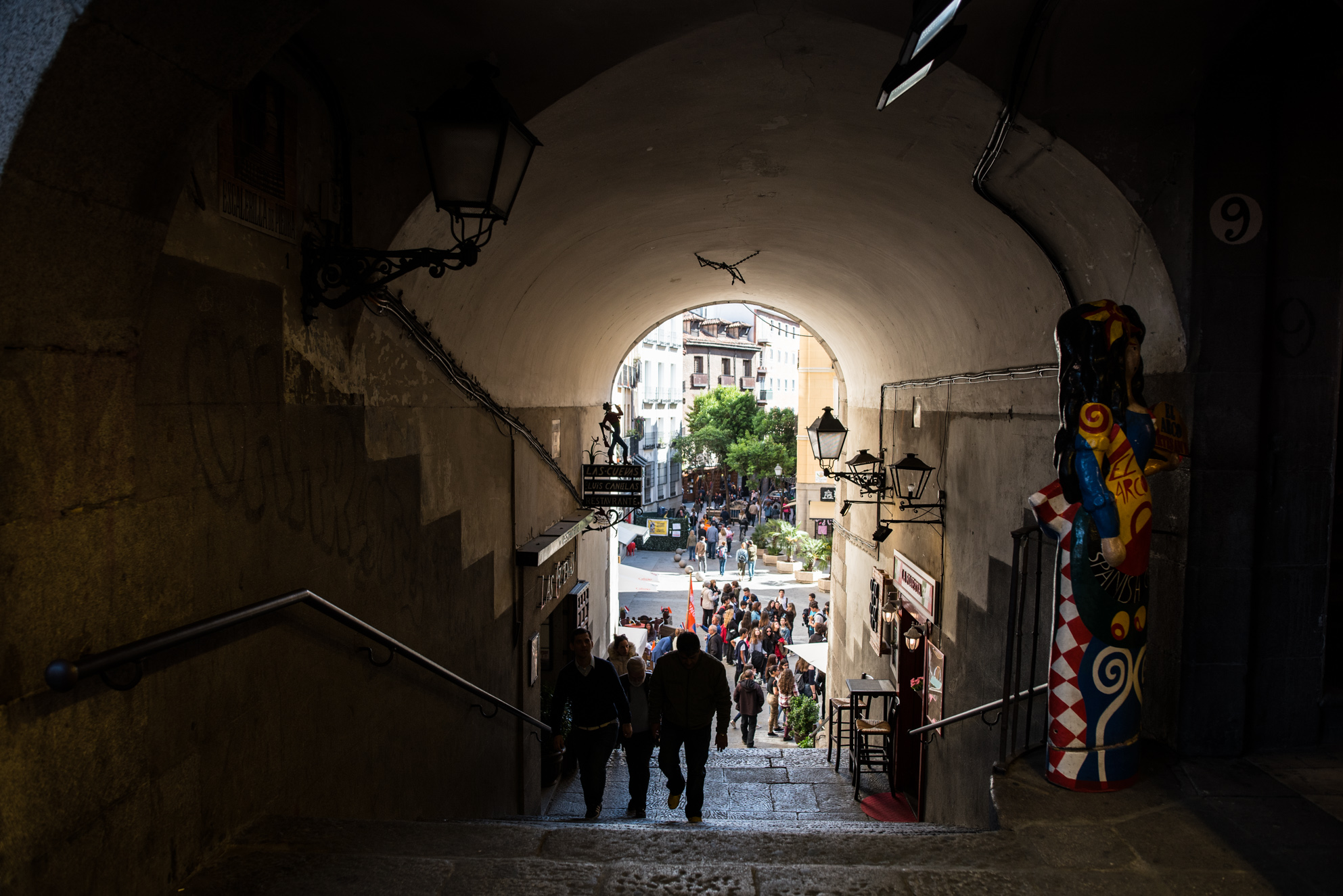 Una de las entradas más famosas y concurridas para acceder a la Plaza Mayor es a través del arco al que se llega por la Calle de Gerona. Atravesarlo es como trasladarse a otra época en sólo unos pocos metros.