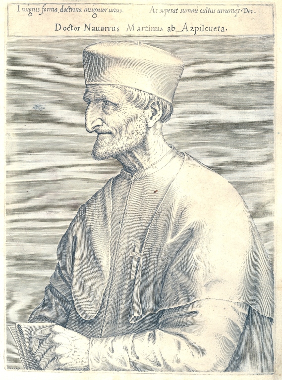 Nacimiento:1493; Fallecimiento: 1586 Fue uno de los miembros más destacados de la Escuela y conocido como el Doctor Navarro. Como sus colegas, estudió en Francia, concretamente en en Cahors y en Toulousse. Acabó regentando una cátedra en la Universidad de Salamanca. Se le considera uno de los canonistas más importantes de su época. Fue también profesor de la Universidad de Coimbra, en Portugal (1538). Asesoró a los papas Pío XII, Gregorio III y Sixto V. En su obra Comentario resolutorio de cambios (1554) enunciar la teoría cuantitativa del dinero. En ese trabajo defiende la idea de que la moneda es una mercancía más, y por ello sufre las mismas variaciones que cualquier otro producto. “Toda mercancía de la que hay fuerte demanda y débil oferta se encarece”, sostiene. Ayudó a eliminar el estigma de la usura y del cobro de intereses.