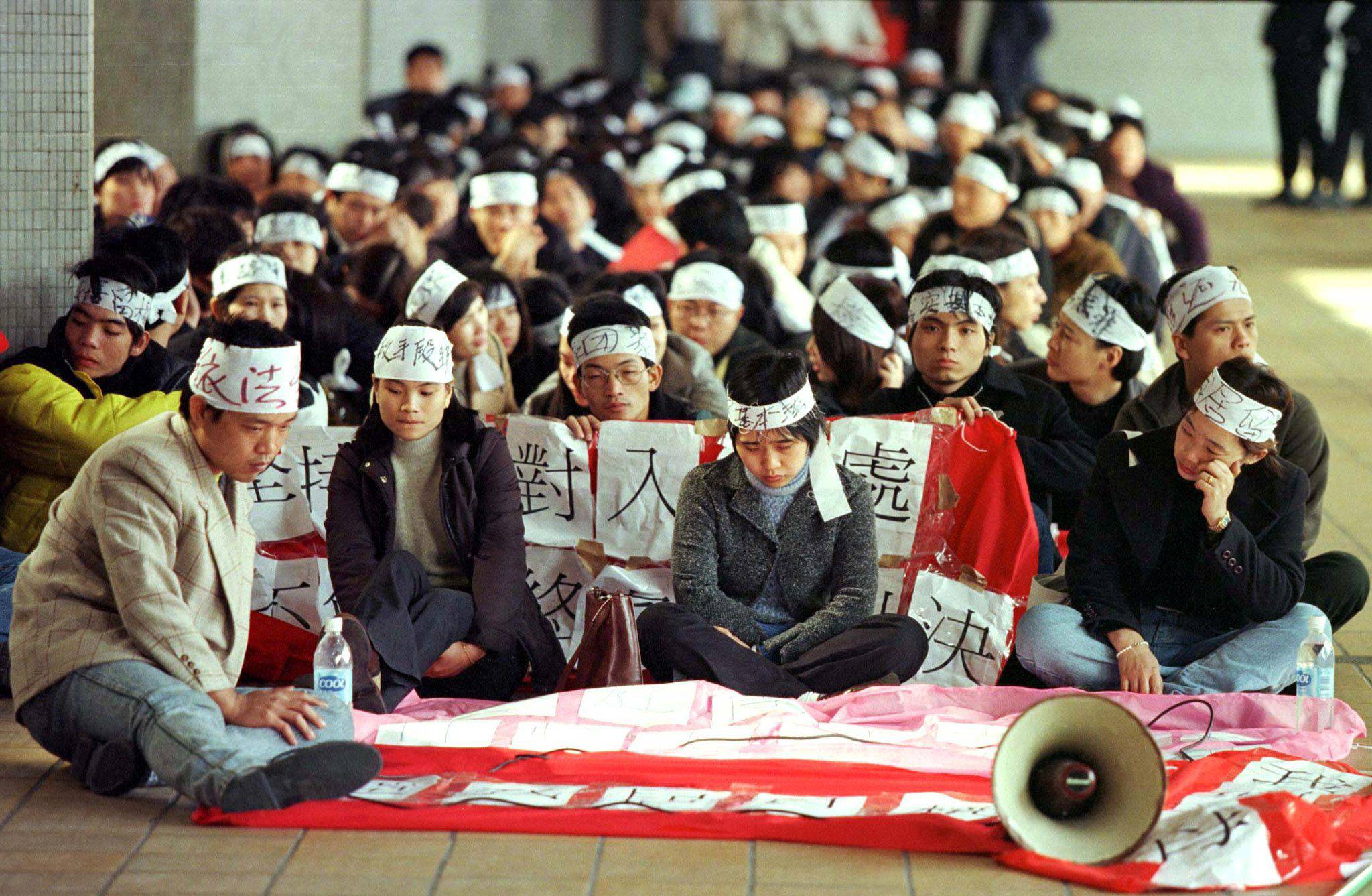 8 de febrero de 1999 - Más de 100 personas de la China continental ataviadas con bandas en la cabeza protestaron frente a la Oficina de Ayuda Legal de Hong Kong para exigir la residencia inmediata en el territorio. En 1999, las esperanzas de muchas familias se desvanecieron cuando Pekín, a petición del gobierno de Hong Kong, revocó un fallo por el máximo tribunal de Hong Kong que concedió amplios derechos de residencia.