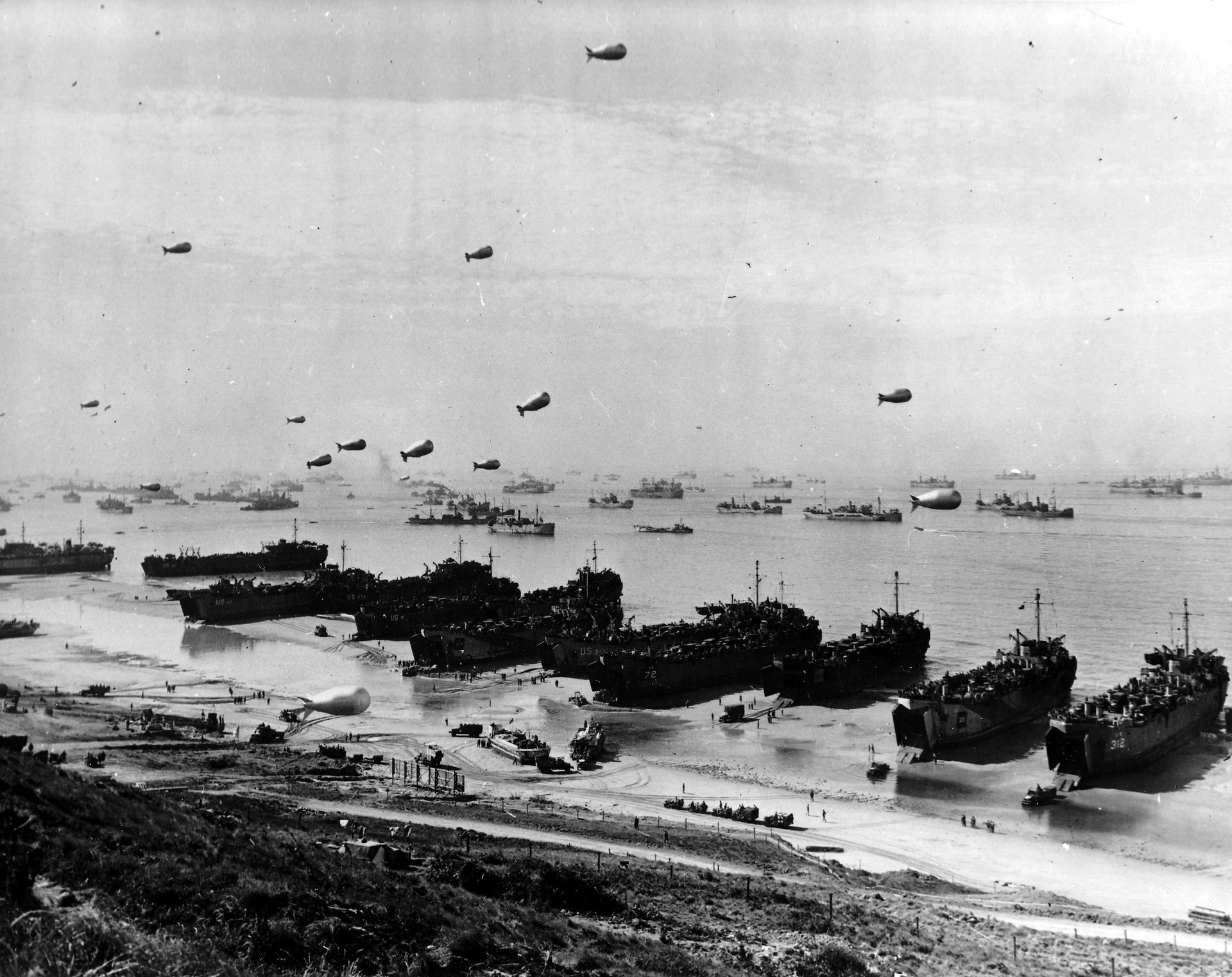 Decenas de barcos, lanchas y globos se disponen a desembarcar en Normandía.