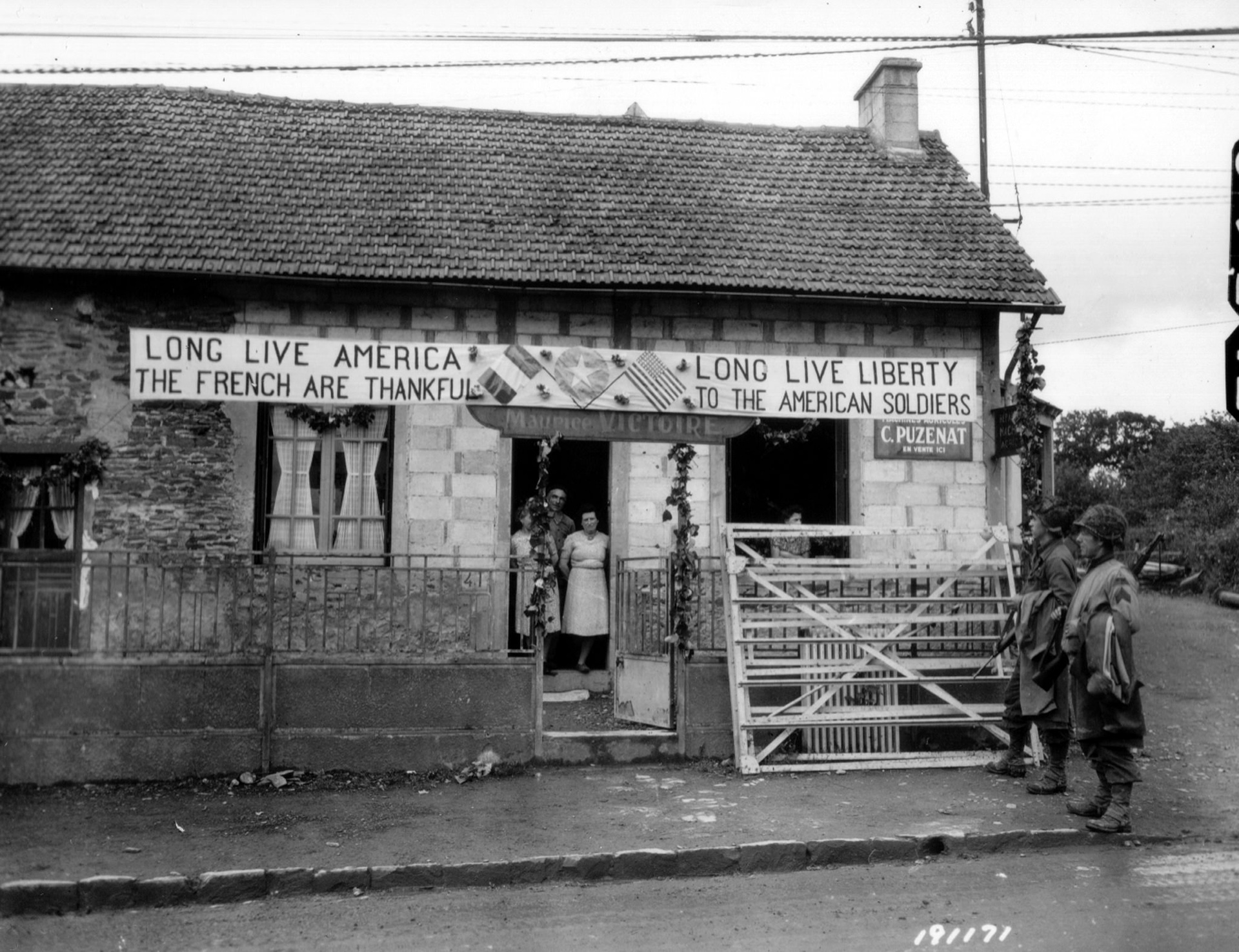 En un cartel de una casa en la zona de Normandía se puede leer "Viva América, viva la libertad, los franceses están agradecidos a los soldados estadounidenses"