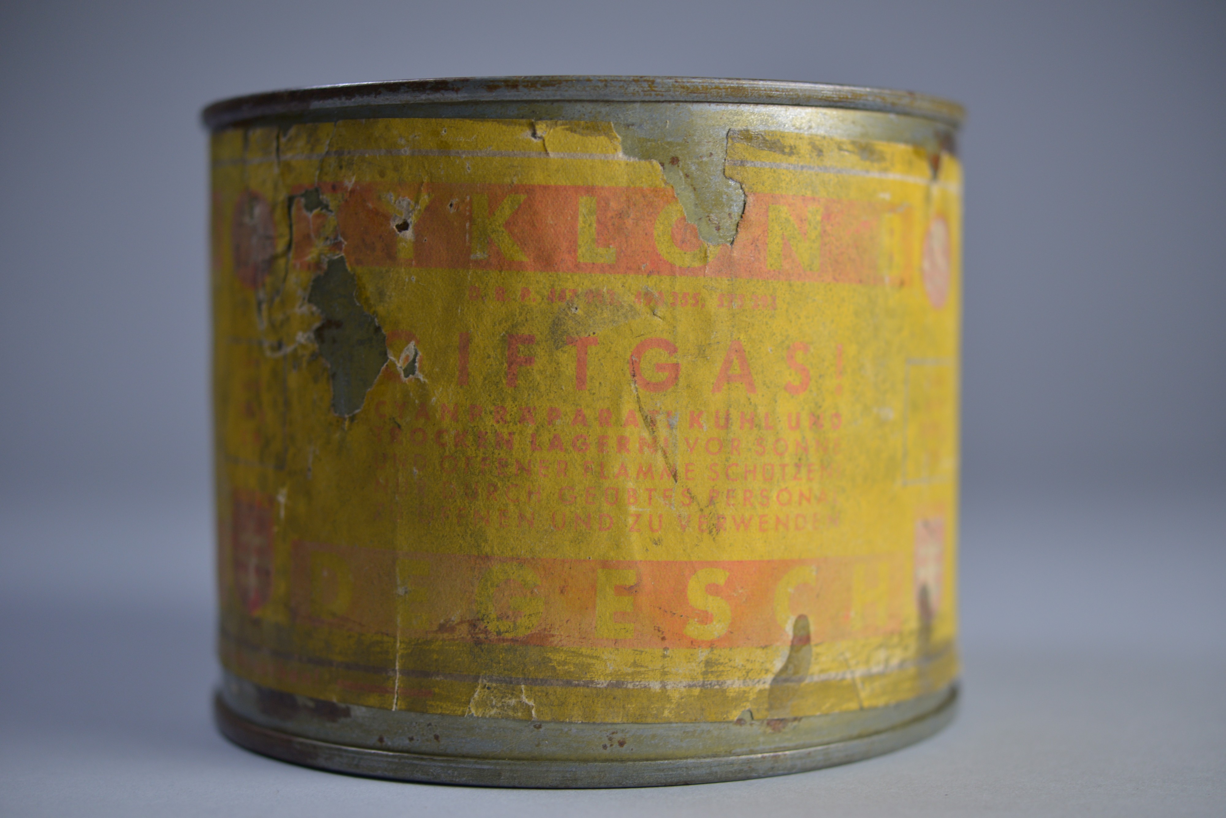 Aunque en anteriores ocasiones el Museo Estatal de Auschwitz-Birkenau ha cedido piezas a museos e instituciones, esta se trata de una colaboración sin precedentes, dada la gran cantidad de piezas cedidas y el carácter itinerante e internacional de esta nueva exposición. Además, la mayoría de estos objetos no se han expuesto nunca antes al público general. En la imagen, una lata de gas Zyclon B, insecticida empleado en las cámaras de gas de Auschwitz