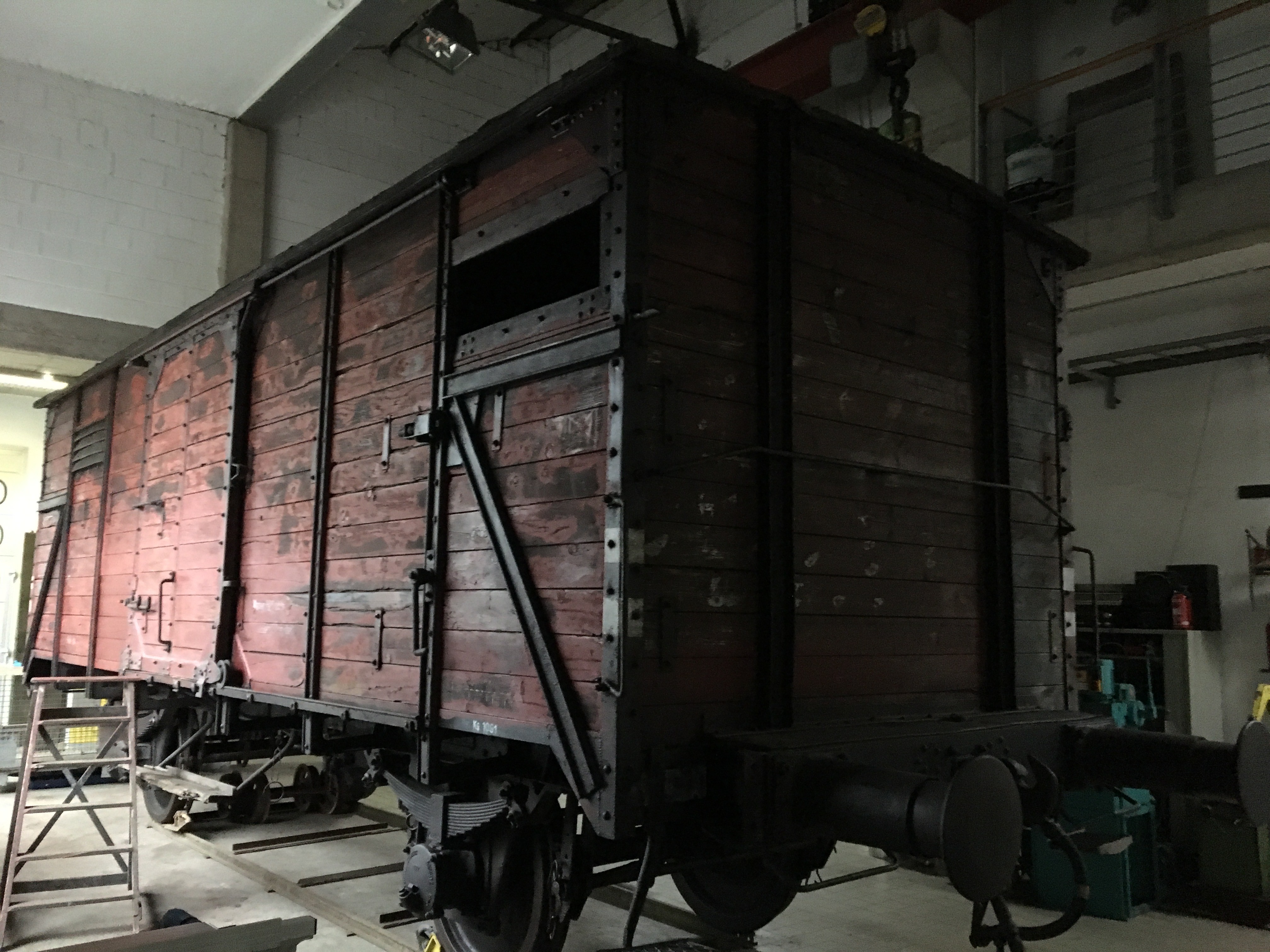 Este es un vagón original de la compañía nacional alemana de tren, la Deutsche Reichsbahn. Este tipo de vagón se utilizó durante la Segunda Guerra Mundial para el traslado de soldados, prisioneros de guerra y judíos deportados hasta los guetos y campos de exterminio.