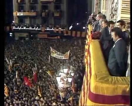 El 23 de octubre de 1977, en el balcón del Palacio de la Generalidad Tarradellas gritó a la multitud concentrada en la plaza de San Jaime la famosa frase: "Ciutadans de Catalunya, ja sóc aquí!", (minuto 3:30 del vídeo). Tarradellas prefirió "Ciutadans de Catalunya" (Ciudadanos de Cataluña), en vez de "catalans".