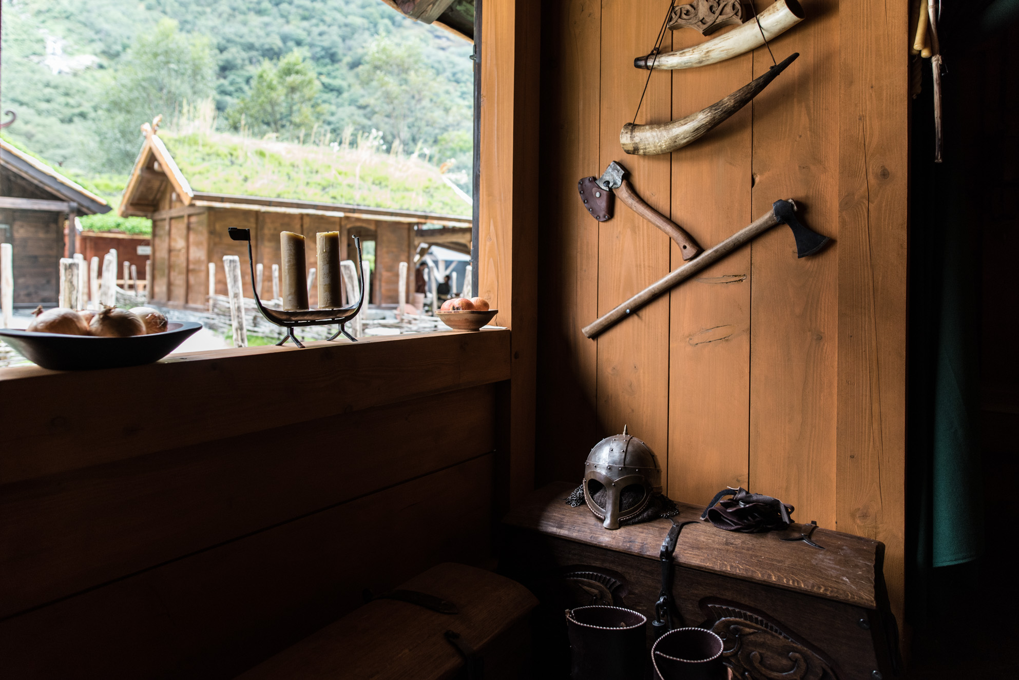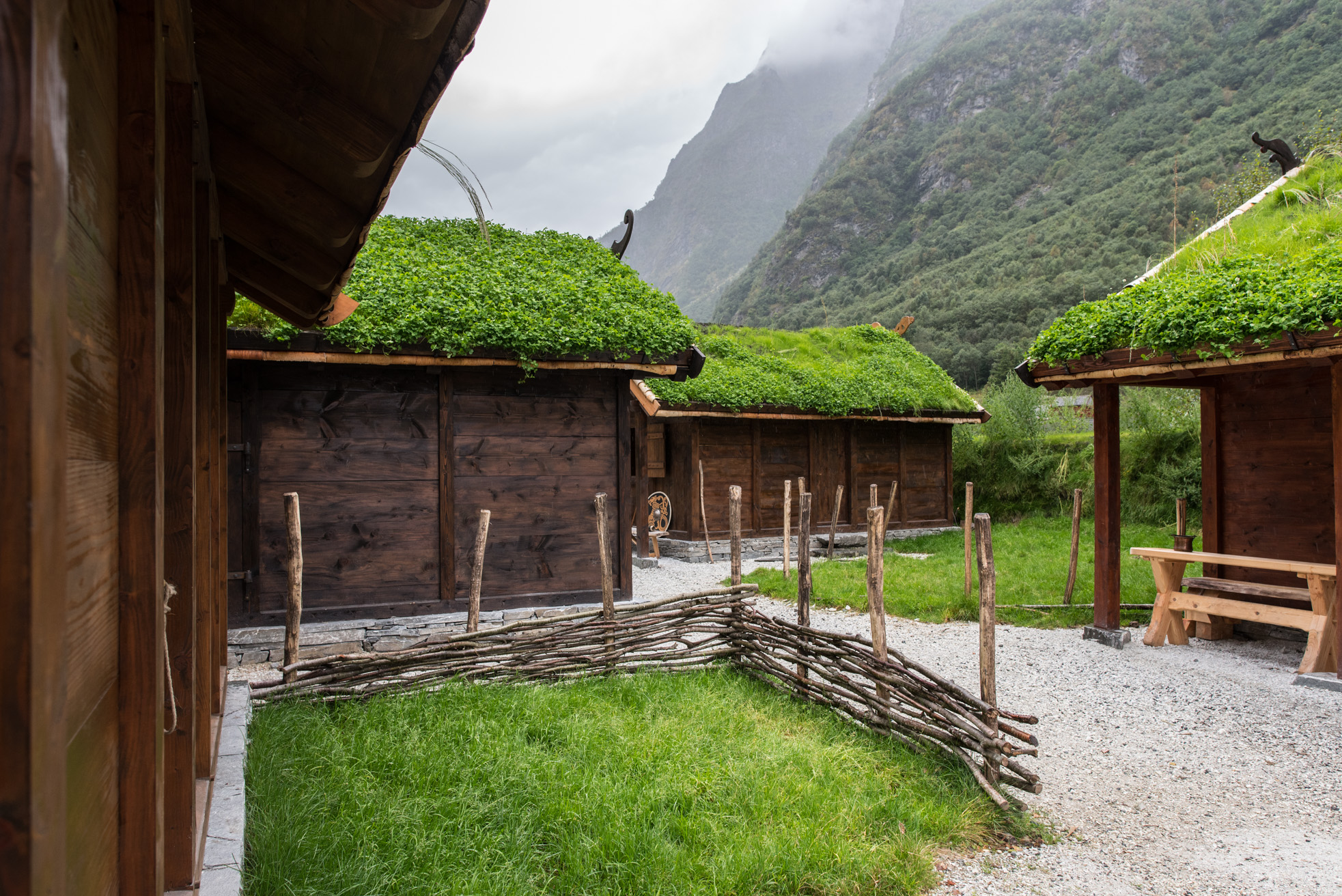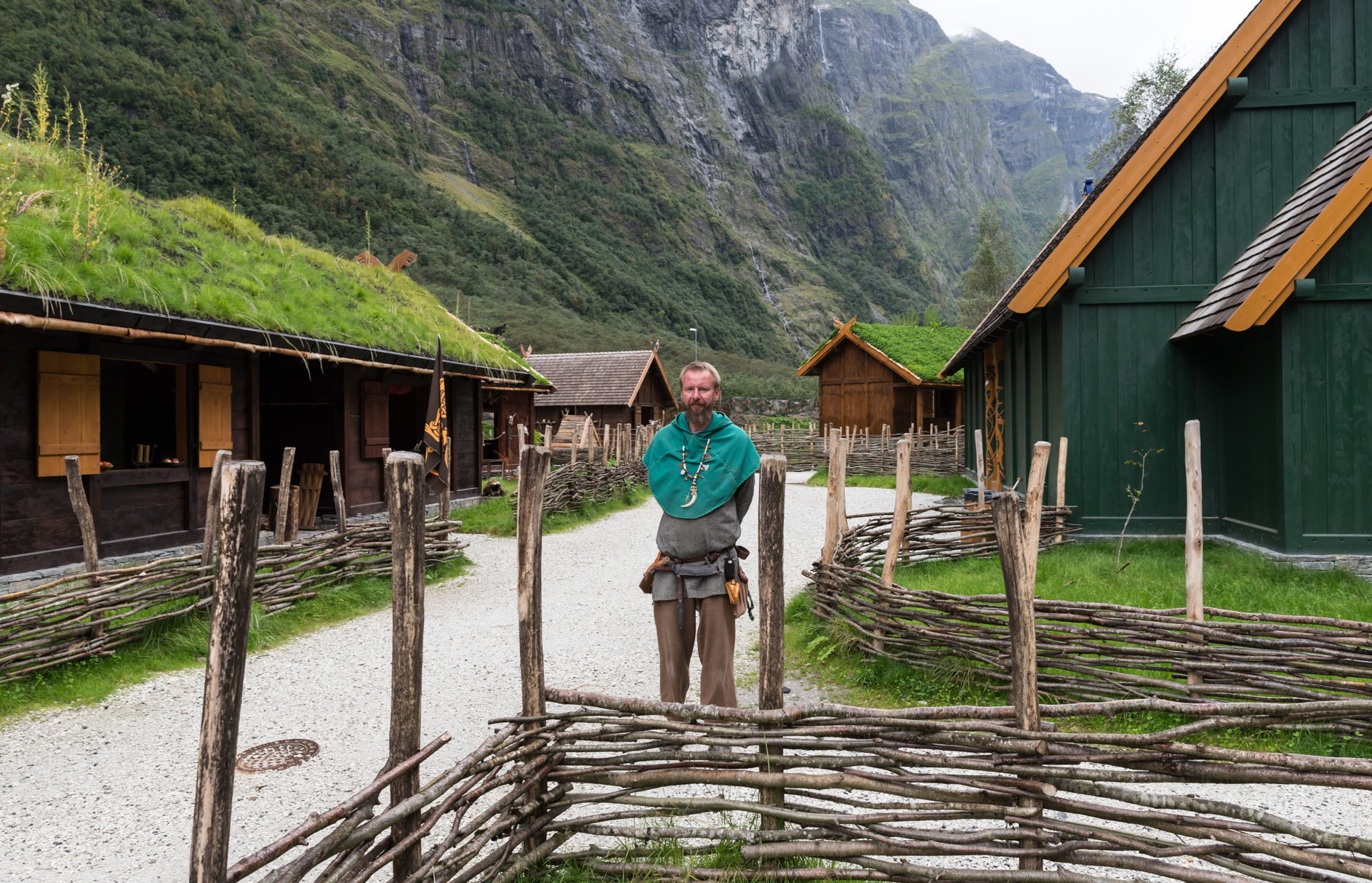En Gudvangen, un pequeño valle del interior del fiordo de Sogn, en Noruega, se ha construido un pueblo imitando al detalle a una aldea vikinga de hace 1000 años, siendo habitado por decenas, de lo que podría denominarse 'vikingos modernos'. Rodeado por un espectacular paisaje natural, con paredes casi verticales de 1500 metros de altitud, agua fría y cristalina y un horizonte de verdor infinito, ya de por sí son alimento para la imaginación de quien desea regresar al pasado de este paraíso terrenal sin piedad.