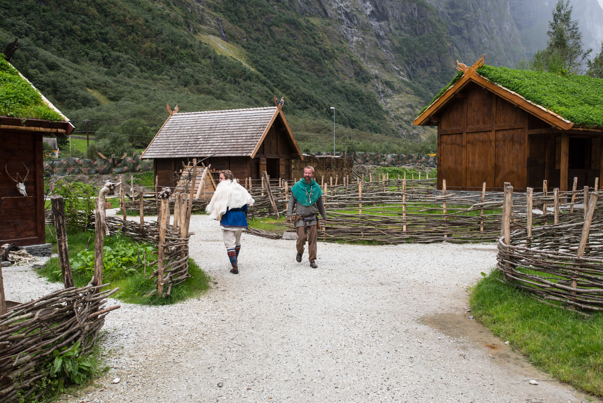 En la aldea vikinga de Njardarheimr, antiguo nombre del actual Gudvangen es posible mezclarse con algunos 'vikingos modernos'. No se trata de actores disfrazados, sino de auténticos vikingos de todas las edades que tienen como estilo de vida la época vikinga. Saben bien su historia y tienen un conocimiento incomparable sobre la vida vikinga de hace un milenio .
