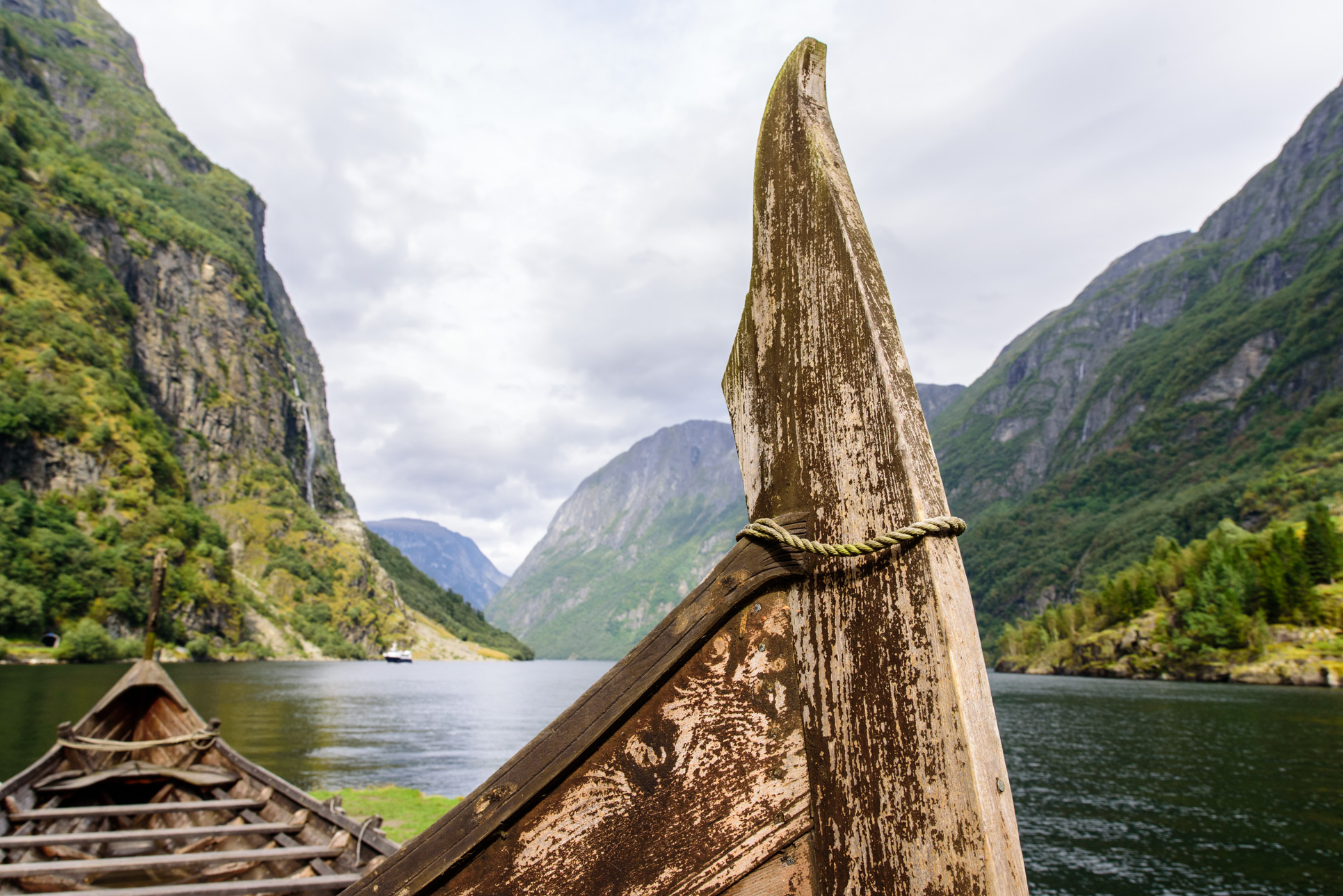 Durante la época vikinga Gudvangen fue un importante lugar para el comercio. El emplazamiento era conocido por ser el lugar de los dioses junto al fiordo Naerøy, el fiordo dedicado a Njord, el dios del comercio y la navegación. Este conecta con el gran fiordo de Sogn, Sognfjord en noruego, considerado uno de los más largos del mundo y Patrimonio de la Humanidad.