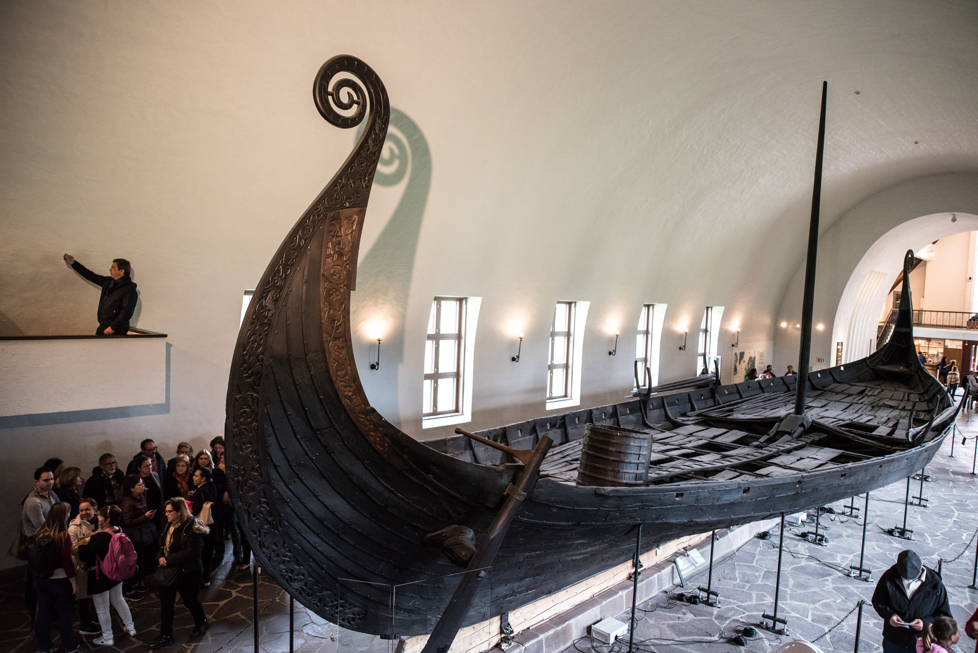 Barco de Oseberg, desenterrado en 1904 se muestra en todo su esplendor en el Museo de Barcos Vikingos de Oslo. Los barcos disponían de muy poco espacio para el equipaje. Cada vikingo era responsable de su propio arcón o caja donde guardaba sus pertenencias y el botín de sus incursiones. En el centro del barco solían amontonarse las armas y los víveres.