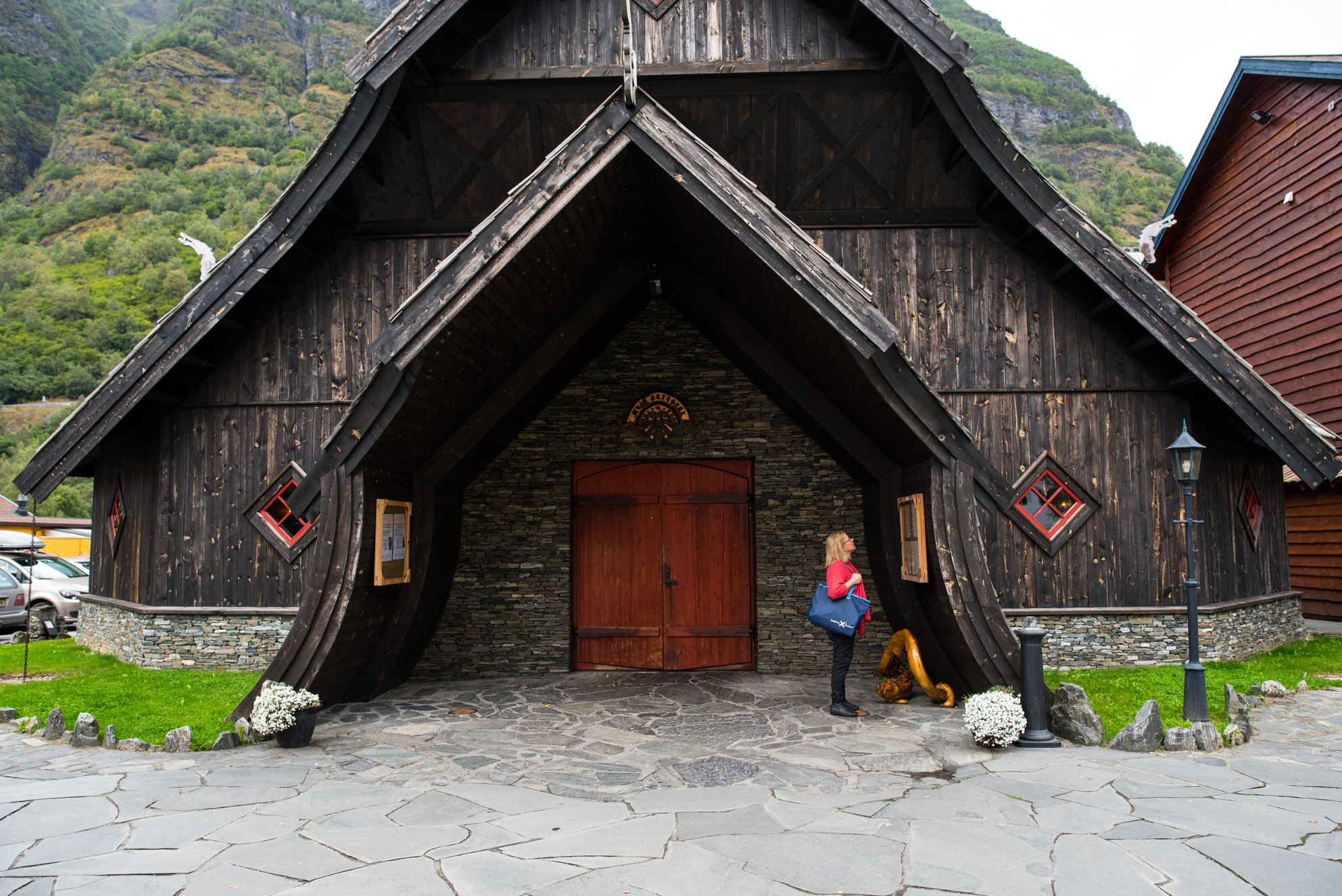 En la cercana localidad de Flam un edificio destaca entre los pocos que hay en esta zona. Se trata de Aegir Brewery & Pub, un restaurante con gastronomía vikinga que ha sido diseñado imitando las edificaciones vikingas.