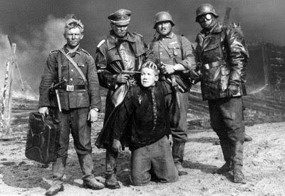 También merece la pena ser vista, nunca mejor dicho, la película Ven y mira, una brutal y muy realista representación de las masacres producidas por los alemanes en su invasión de la Unión Soviética. El odio y el miedo que se tienen los germanos y los eslavos cristalizaron en unas matanzas por ambos lados auténticamente dantescas. Y dantesco es el adjetivo que mejor cuadra a lo que Klímov, el director de la película, nos obligar a mirar. Una brutalidad que seguiría más allá de la guerra cuando en la conferencia de Teherán, Stalin, encumbrado por su éxito en Stalingrado, reclamó exterminar a toda la oficialidad del ejército alemán, a lo que se opuso indignado Winston Churchill que se temía ya entonces el destino que le esperaba a Europa oriental bajo dominio comunista.