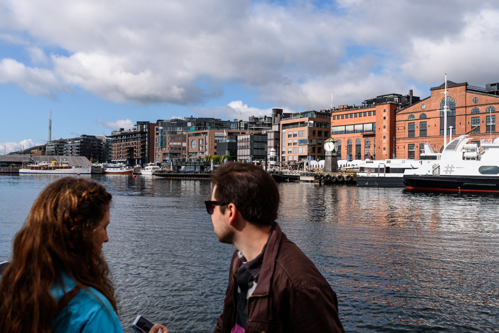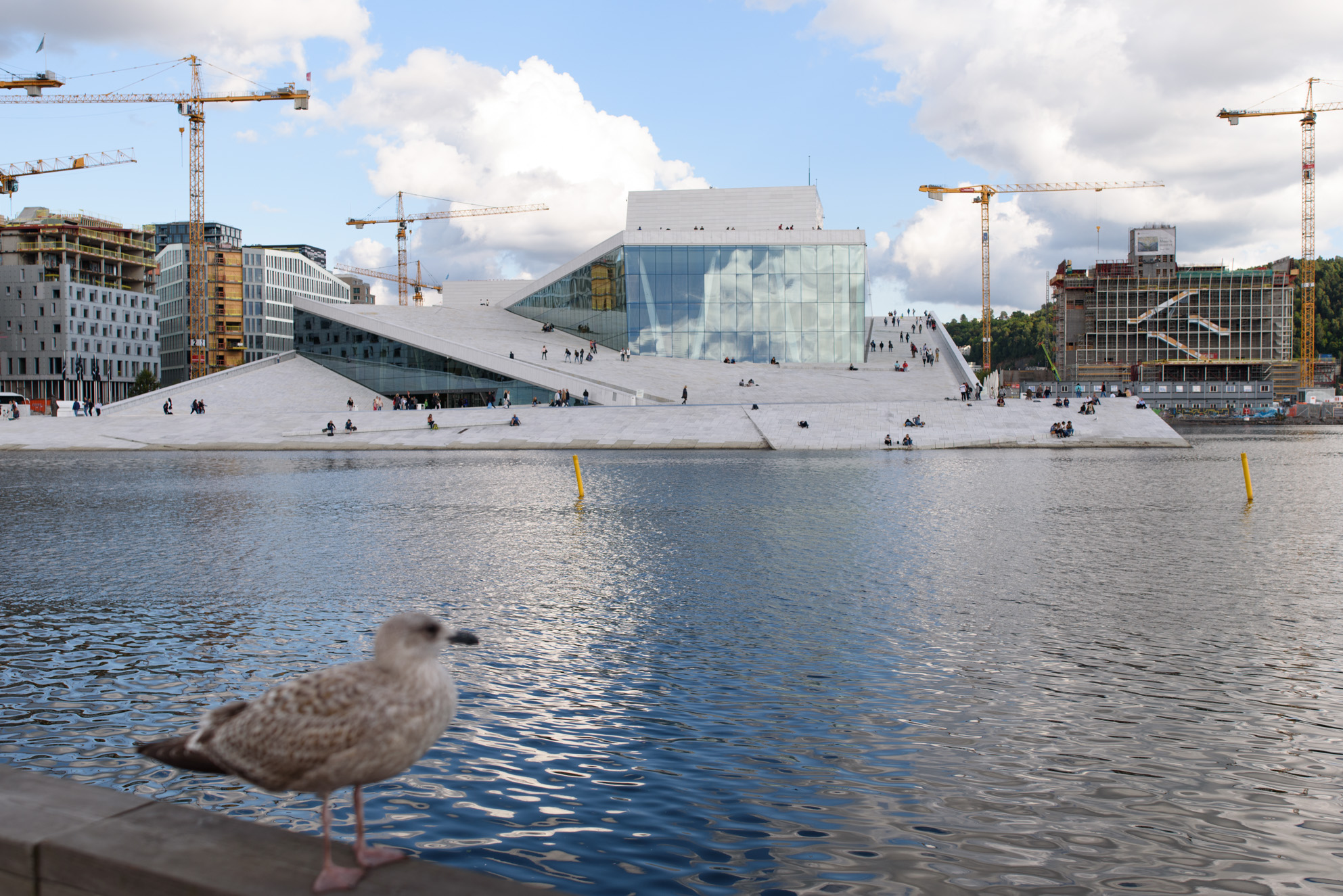 Entre todas las construcciones que se erigen en la bahía de Oslo destaca su imponente opera, inaugurada un 24 de abril de 2008 y que cumple 10 años de vida. Un edificio cuyo diseño parece que estuviera hecho a propósito para destacar entre el skyline de la ciudad nórdica. Construida con mármol de Carrara, brilla como si de un faro se tratase sobre el fiordo de Oslo, entre los edificios, muchos de ellos de nueva construcción. A escasos minutos se encuentra el nuevo y flamante barrio financiero de la ciudad, una postal que ofrece una imagen actual y moderna de la misma, el llamado Barcode. También destaca Aker Brygge, donde se situaban los viejos astilleros de la ciudad. Hoy es una de las zonas de ocio de Oslo, animada por centros comerciales, bares y restaurantes. Y es el punto de entrada a uno de los barrios de diseño y de moda: Tjuvholmen.