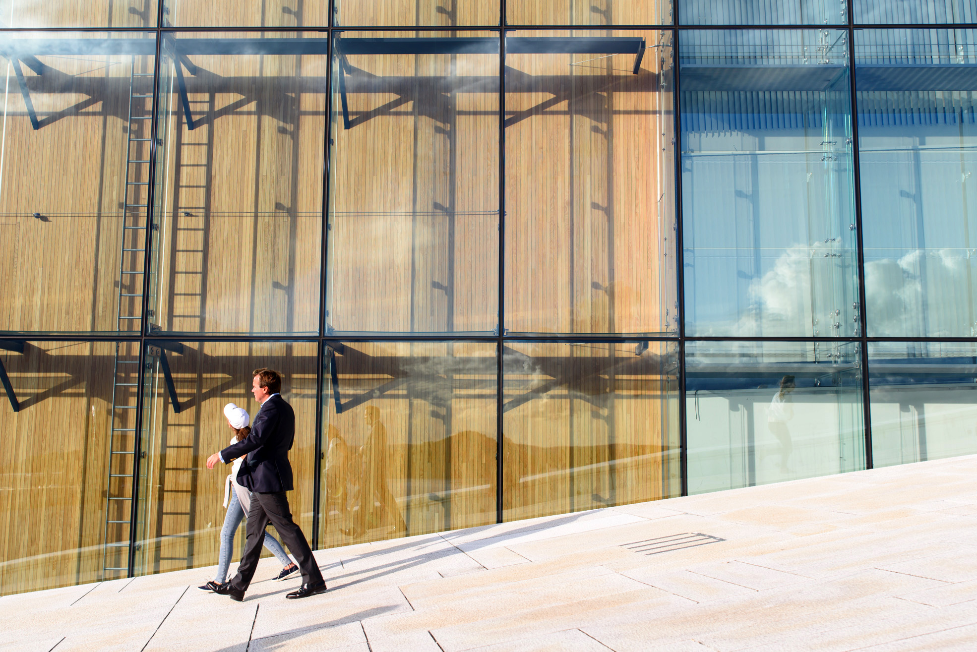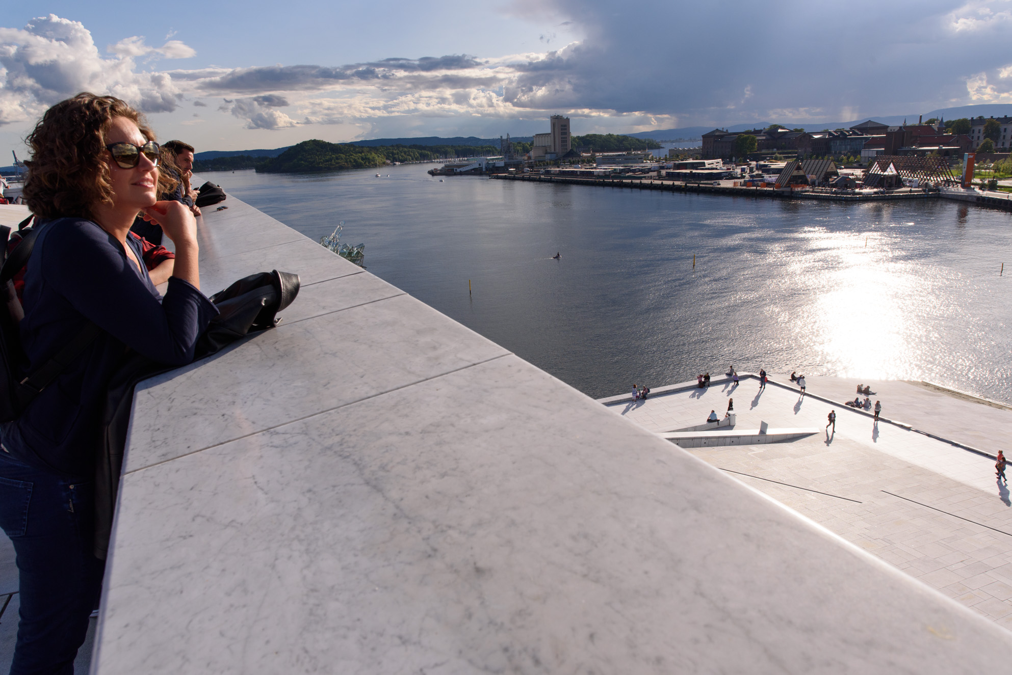 Caminar sobre la ópera y llegar al mar es posible. El edificio fue diseñado para que se pudiera pasear desde su base hasta lo más alto de su construcción. Un lugar de encuentro para los oslenses y punto de referencia para cualquier viajero. Este edificio también se caracteriza por fundirse con el agua ya que su estructura está diseñada para que se pueda acceder al fiordo directamente.