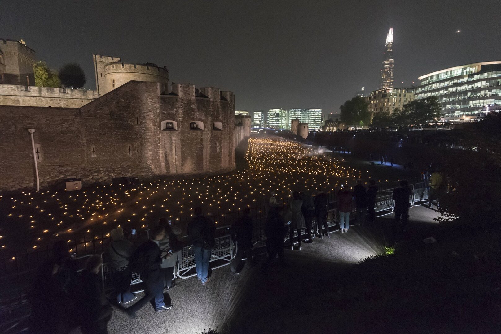 Miles de antorchas permanecerán encendidas hasta el próximo domingo en la Torre de Londres para conmemorar el centenario de la firma del armisticio que puso fin a la I Guerra Mundial, el 11 de noviembre de 1918.