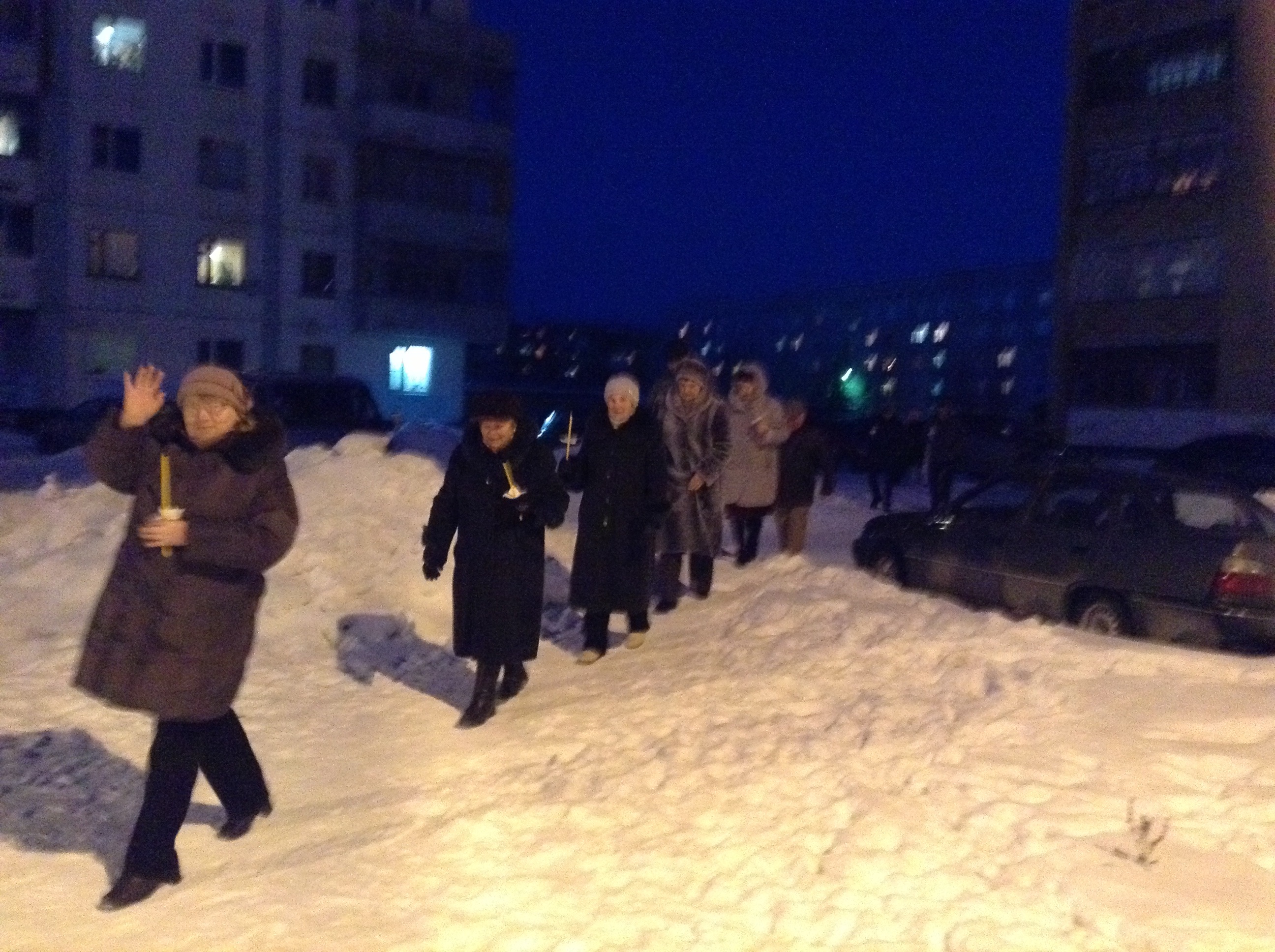 Fotos nocturnas en la noche de Pascua en Ujtá