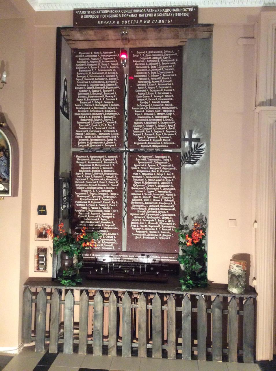 Memorial con nombres de sacerdotes asesinados en época soviética