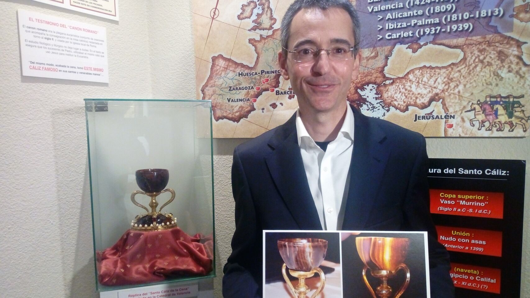 Según el estudio de este profesor de Estadística Aplicada de la UPV, en el que ha colaborado el Centro Español de Sindonología y que ha sido publicado recientemente, esta cita (capítulo 15, versículo 2) del Apocalipsis "concuerda supuestamente con las características de la copa de ágata".