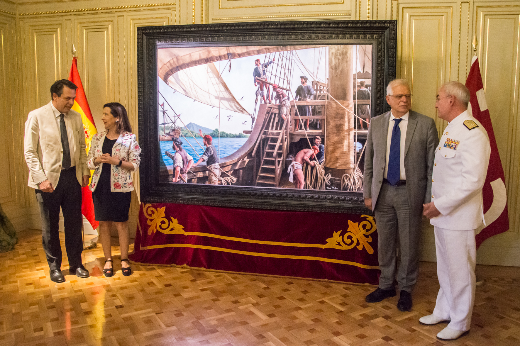 La obra ha sido un encargo del Ministerio de Defensa dentro del amplio programa de actos con los que se está conmemorando el V Centenario de la primera vuelta al Mundo. Y formará parte a partir del próximo mes de septiembre de la exposición ‘Fuimos los primeros, Magallanes, Elcano y la vuelta al mundo’ que se inaugurará en el Museo Naval de Madrid.
