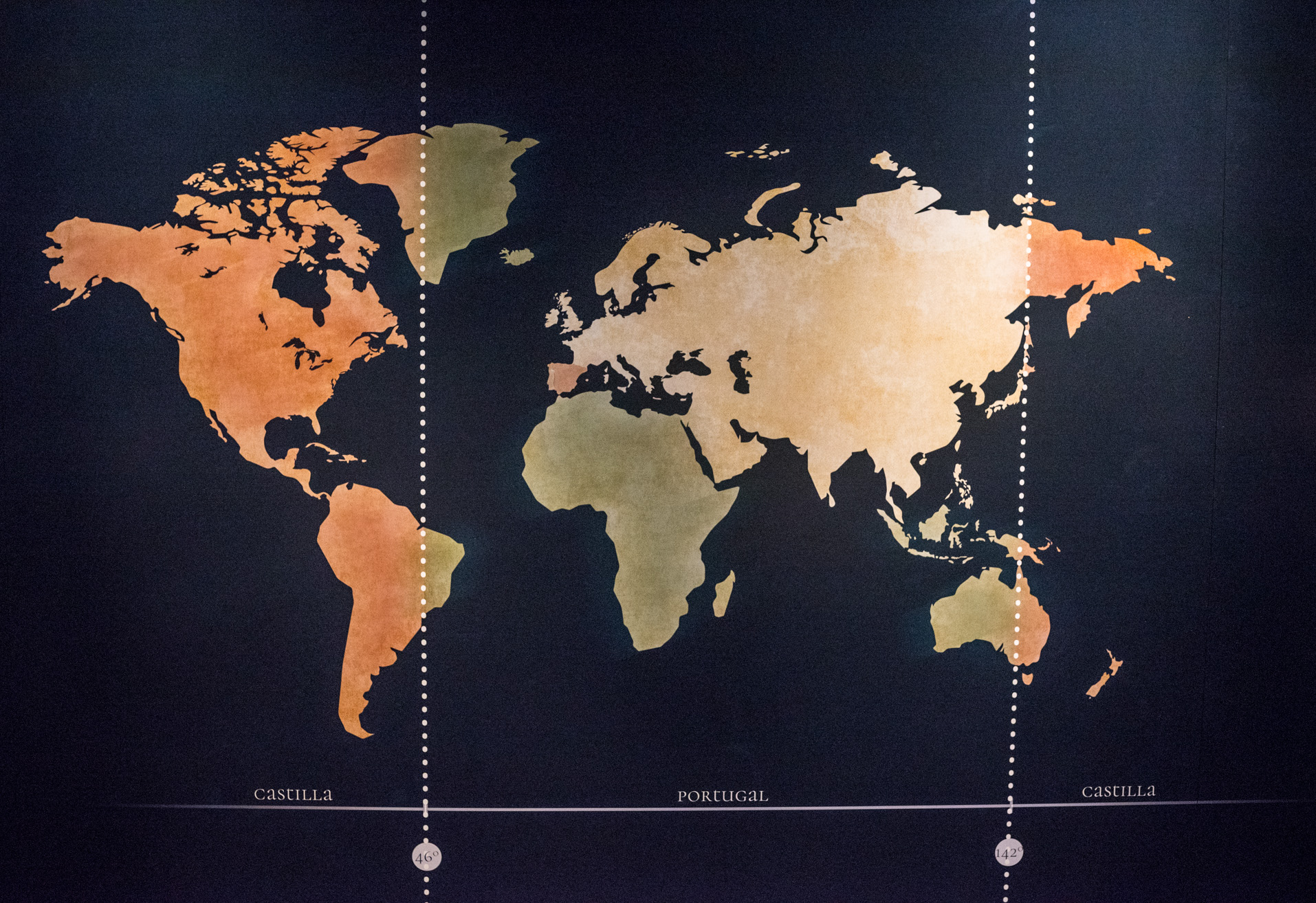 Mapamundi con la repartición del mundo después del Tratado de Tordesillas.