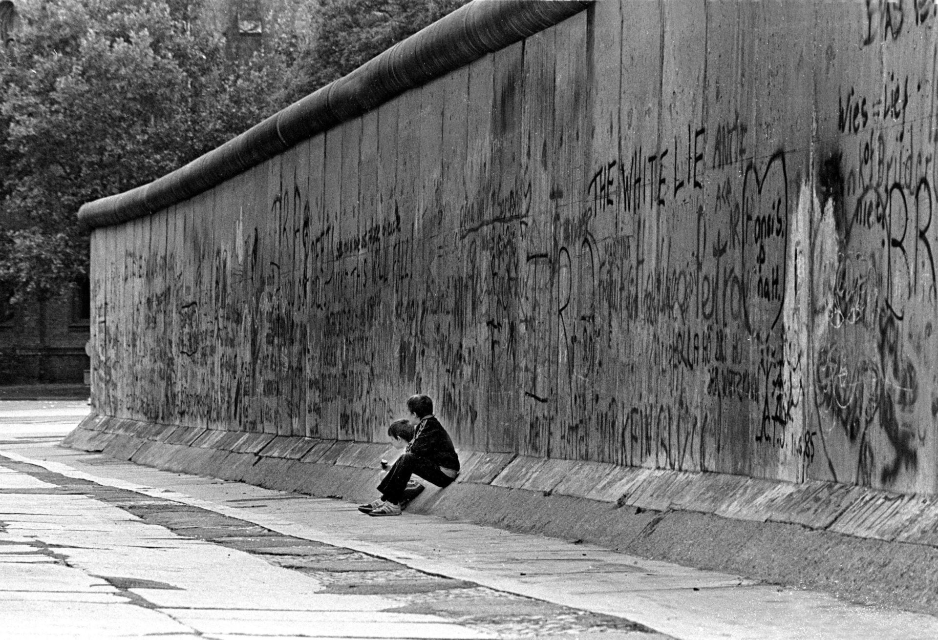 Niños apoyados en el Muro. Imagen tomada en 1986.