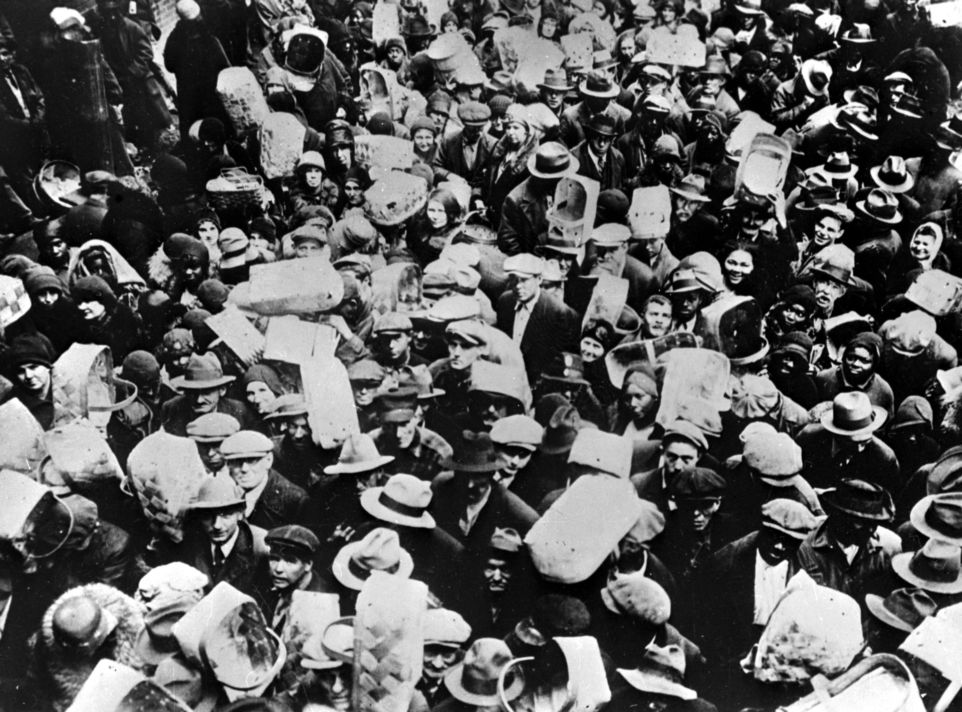 Parados duermen en la recepción del City Hall, en los años de la Gran Depresión.