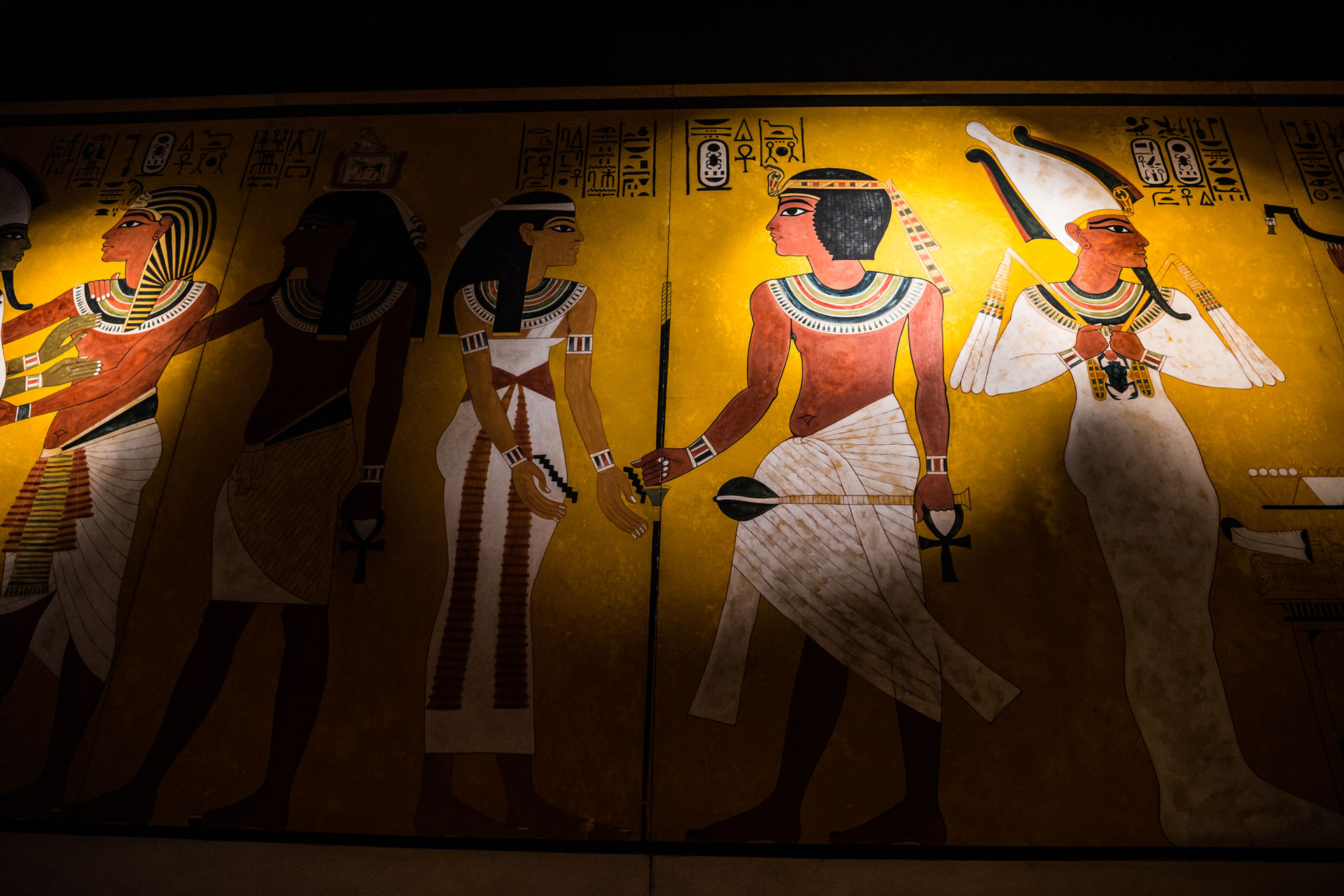 Uno de los murales que se pueden ver en la exposición Tutankhamón, la tumba y sus tesoros.