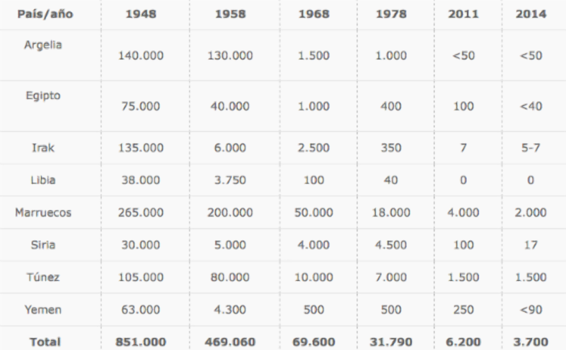 (Evolución de la población judía en los países árabes a lo largo del pasado siglo).