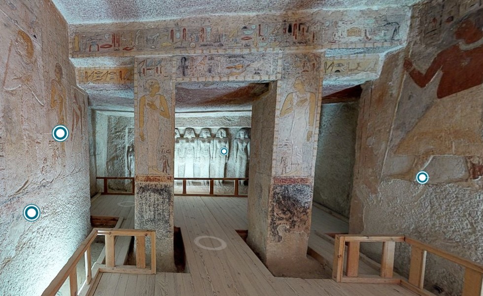 El sepulcro, perteneciente a la XVIII dinastía (1550 y 1295 a. C.), es "una de las tumbas más bellas y mejor preservadas", según el Ministerio de Turismo y Antigüedades egipcio, que ha lanzado por primera vez esta iniciativa bajo el lema "Vive Egipto desde casa. Quédate en casa. Mantente a salvo".
