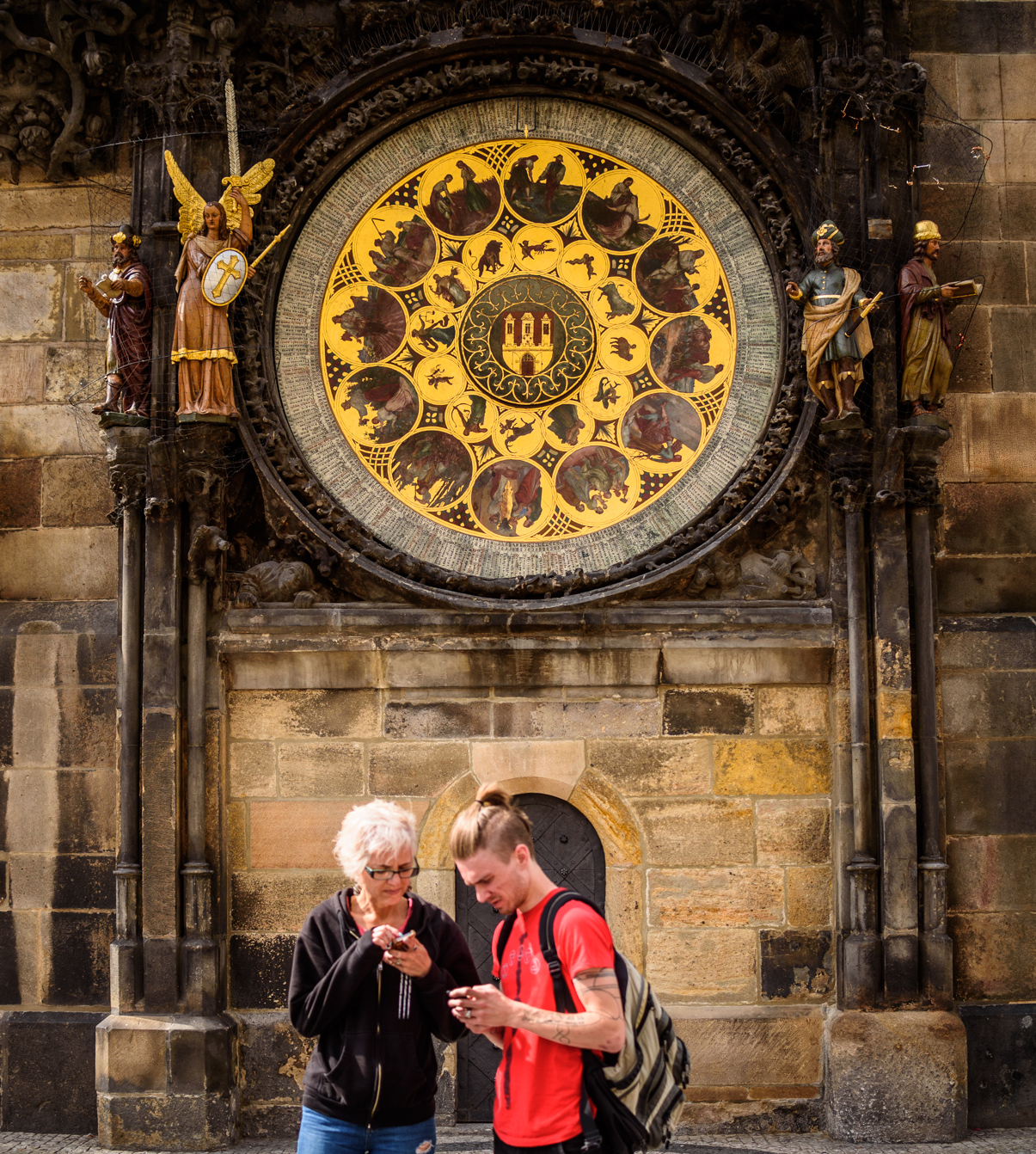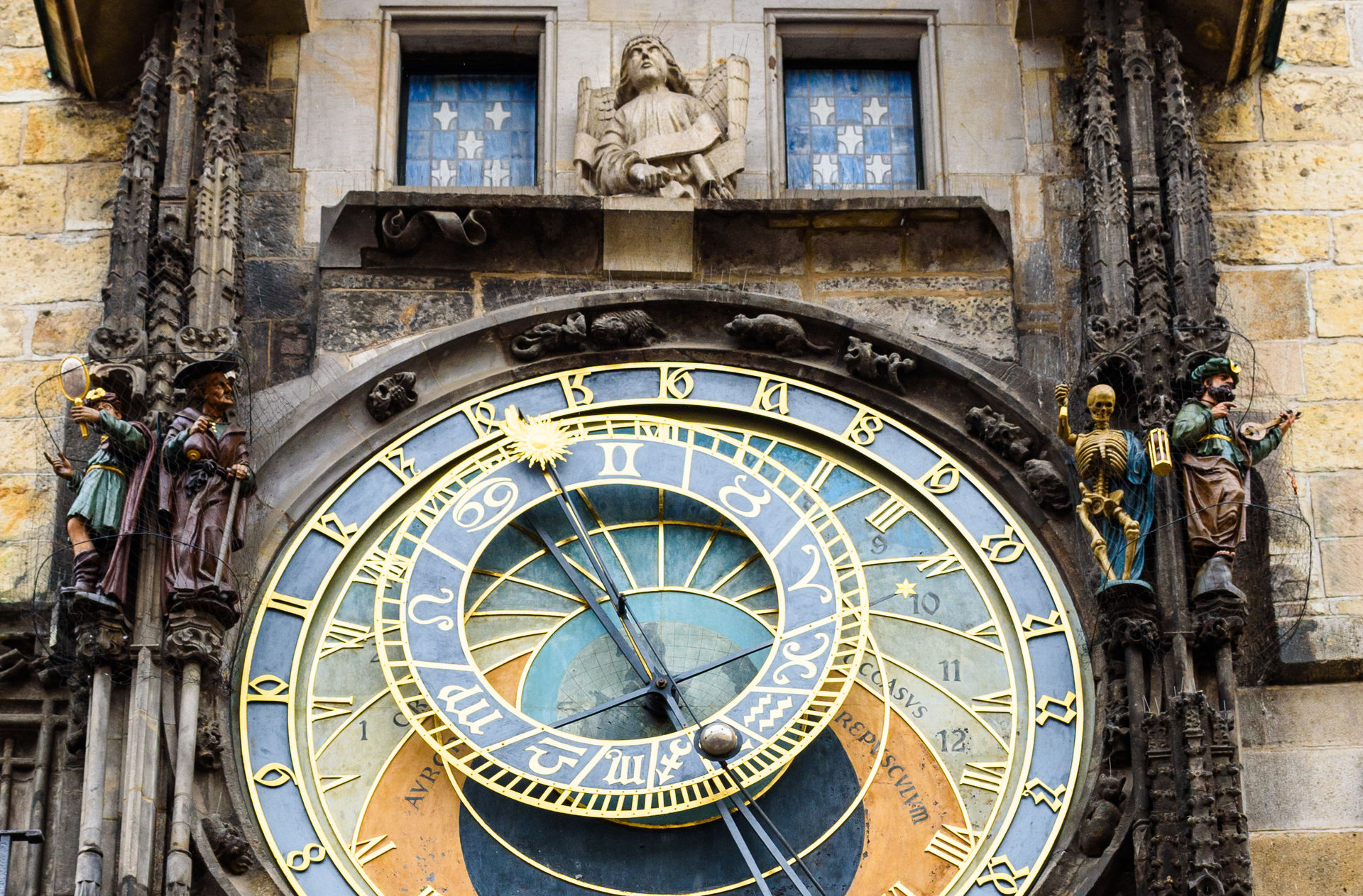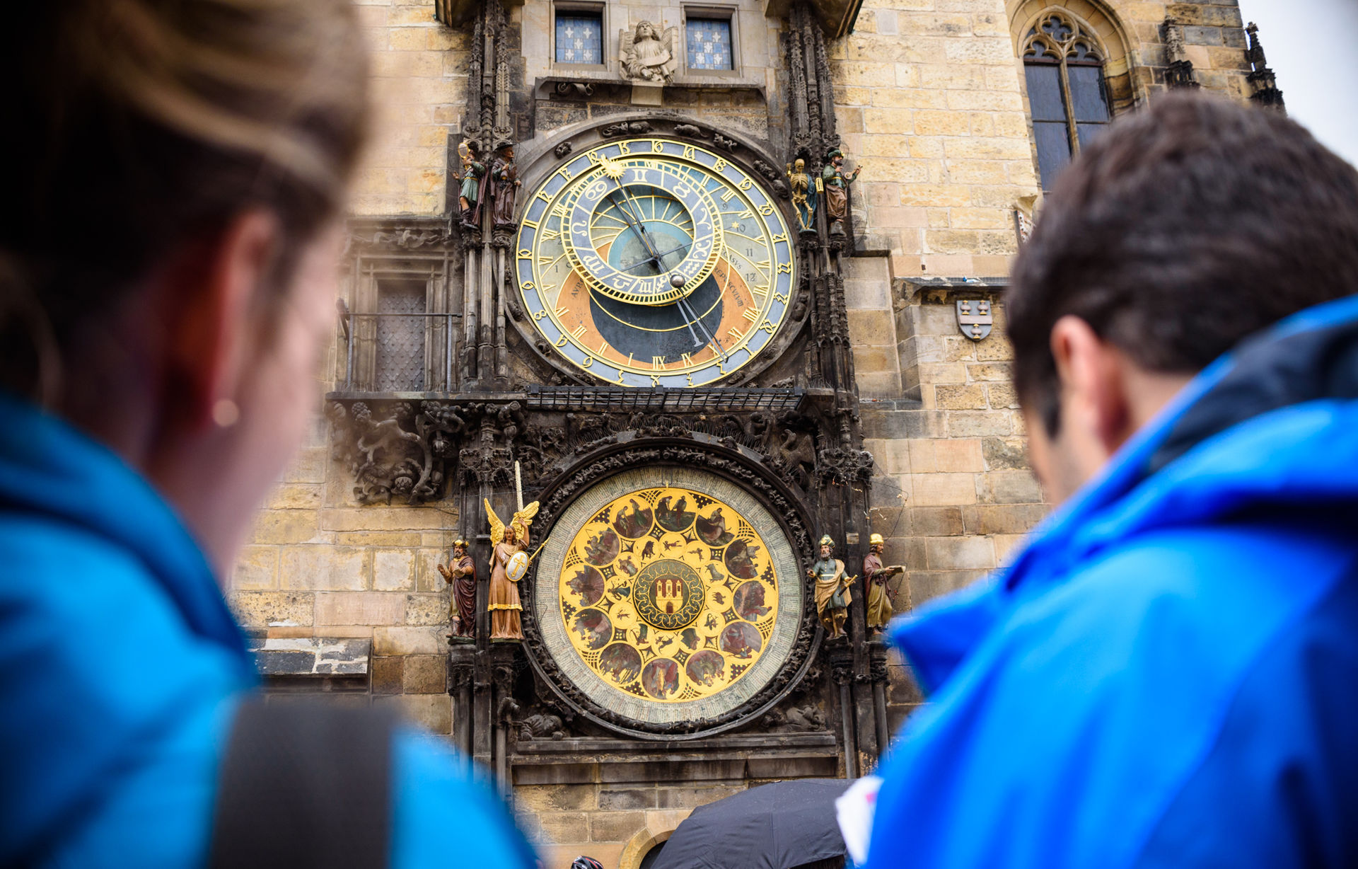El reloj astronómico fue fabricado en el año 1410 por Nicolás de Kadañ, junto con el astrónomo Jan Sindel, astrónomo y profesor de la Universidad de Carlos IV. A finales del siglo XV, Hanus de Ruze, le introdujo varias mejoras. Está situado en la torre del Ayuntamiento, en la plaza de la Ciudad Vieja, un lugar que a lo largo de sus mil años de existencia ha sido testigo silencioso de los acontecimientos más importantes de la historia checa.