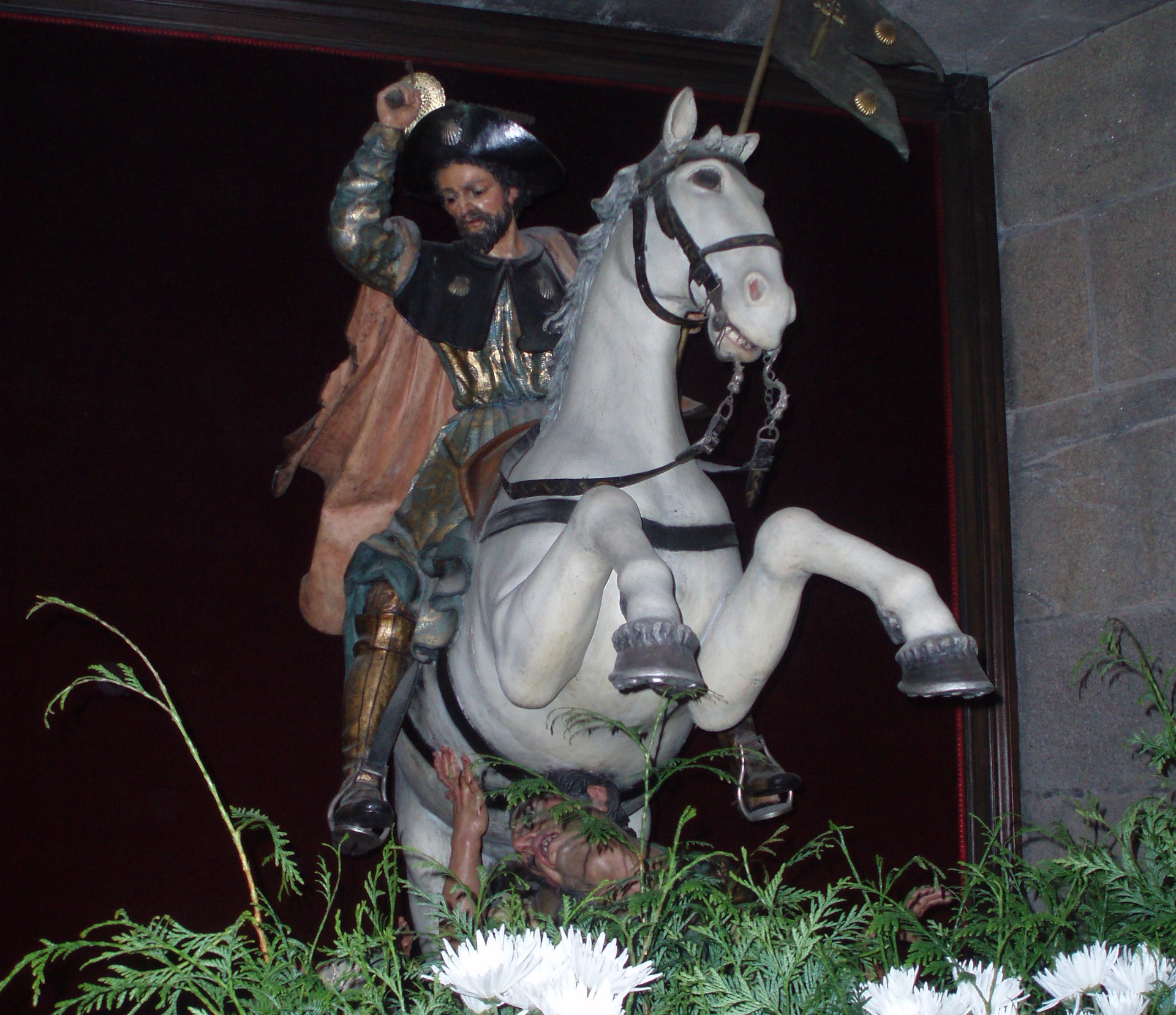 Ciertos sectores políticos y religiosos han cargado sus tintas contra esta efigie desde hace años. Como consecuencia de ello, la curia catedralicia ya decidió en 2006 poner delante de la figura un macrocentro vegetal, compuesto principalmente por lirios, con el objetivo de que estas plantas tapasen las cabezas cortadas de los sarracenos que se encuentran a los pies del caballo de Santiago el Mayor.