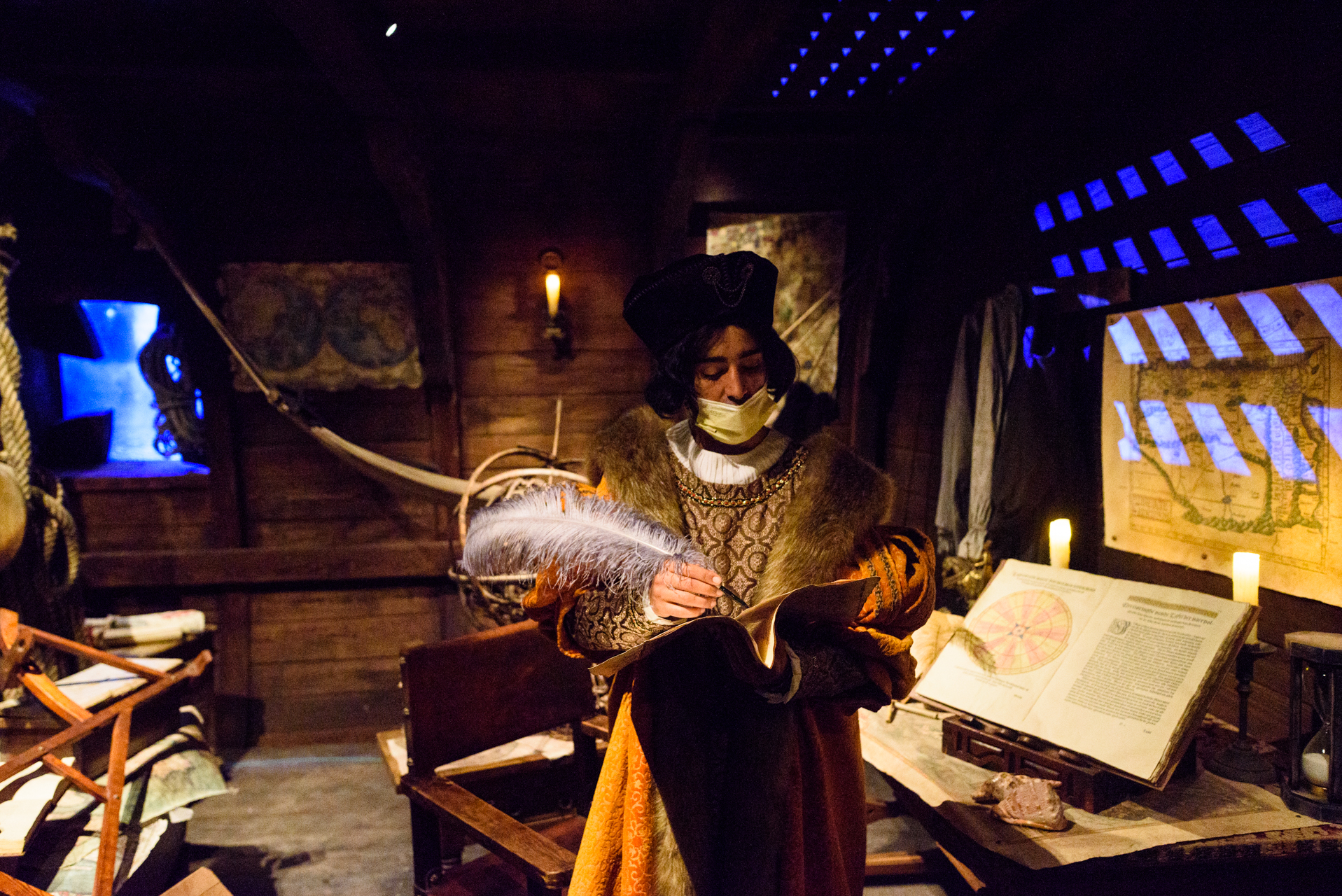 En el interior del espectáculo 'Allende la mar océana' se puede conocer, de primera mano, al capitán de un navío español.