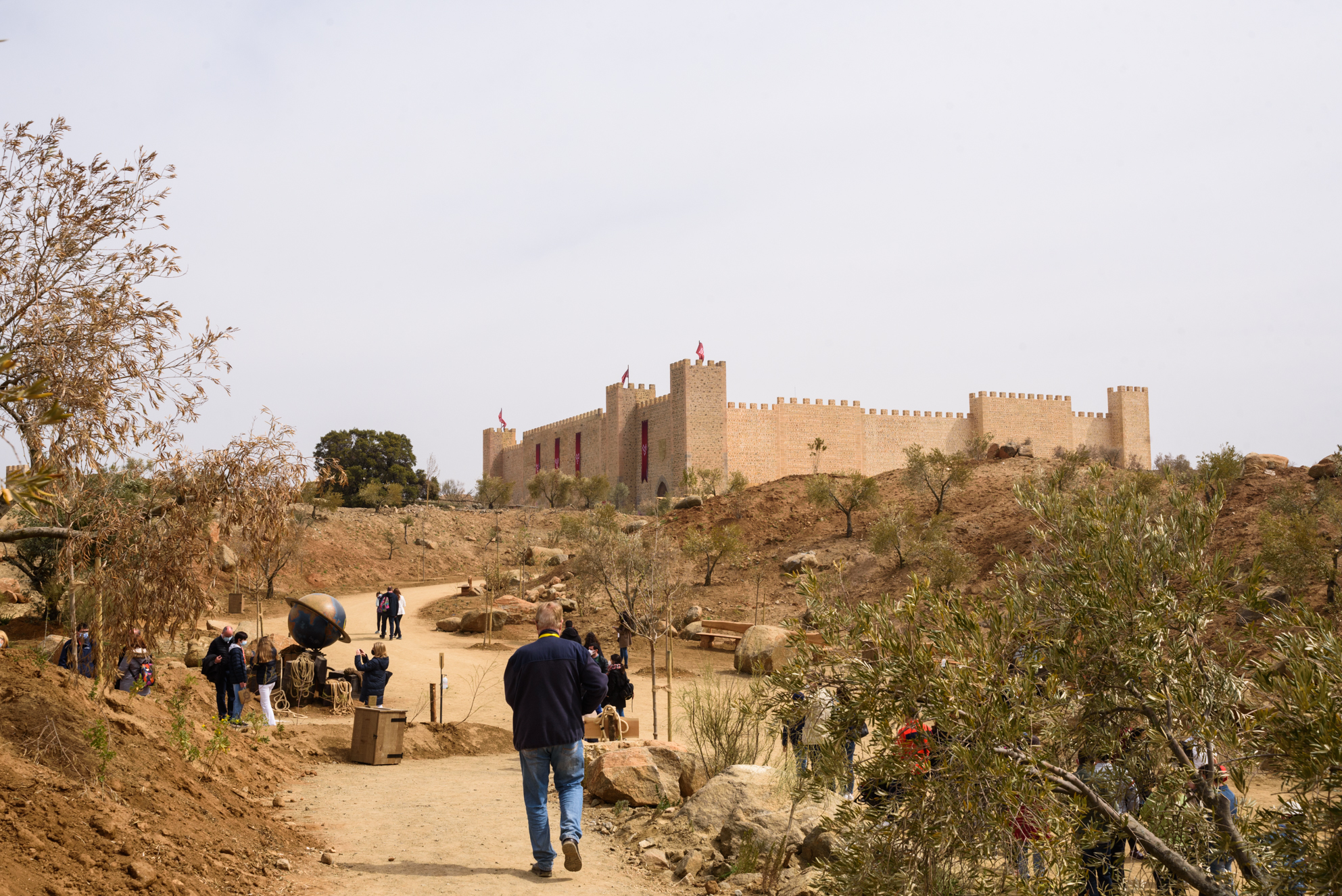 El parque es extenso, pero manejable. Conectado por varios caminos. De fondo el gran castillo de Puy du Fou España.