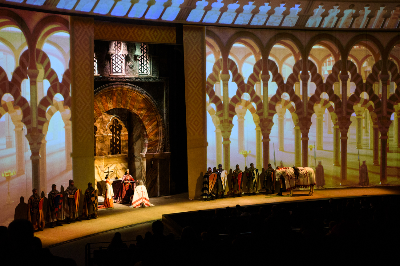 Un momento durante la representación de la obra 'El último Cantar', que junto con 'El Sueño de Toledo', es el plato fuerte del parque.