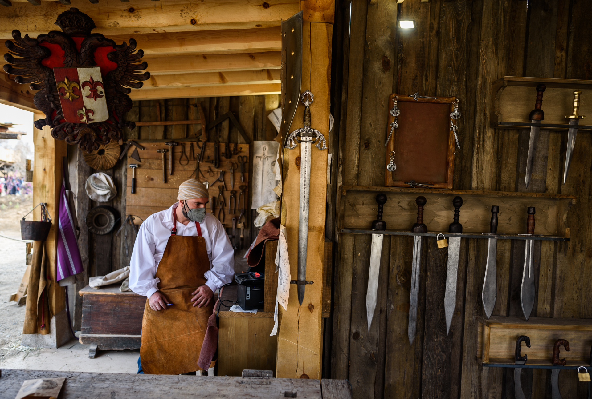 Junto al castillo se encuentra la herrería, donde poder ser testigos del trabajo de un herrero al estilo medieval, forjando espadas para los soldados.
