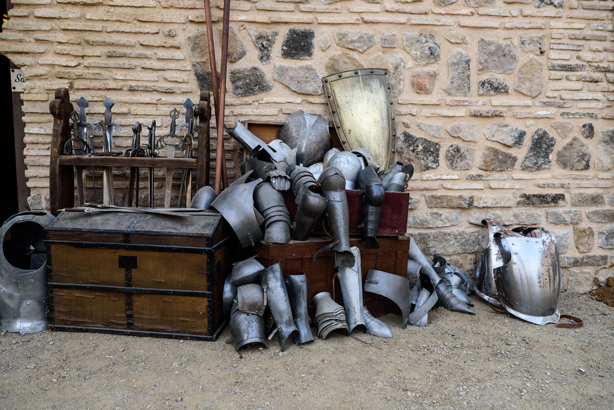 Un rincón del parque donde se apilan varias armaduras de los Tercios de Flandes. Nada está puesto al azar en Puy du Fou.