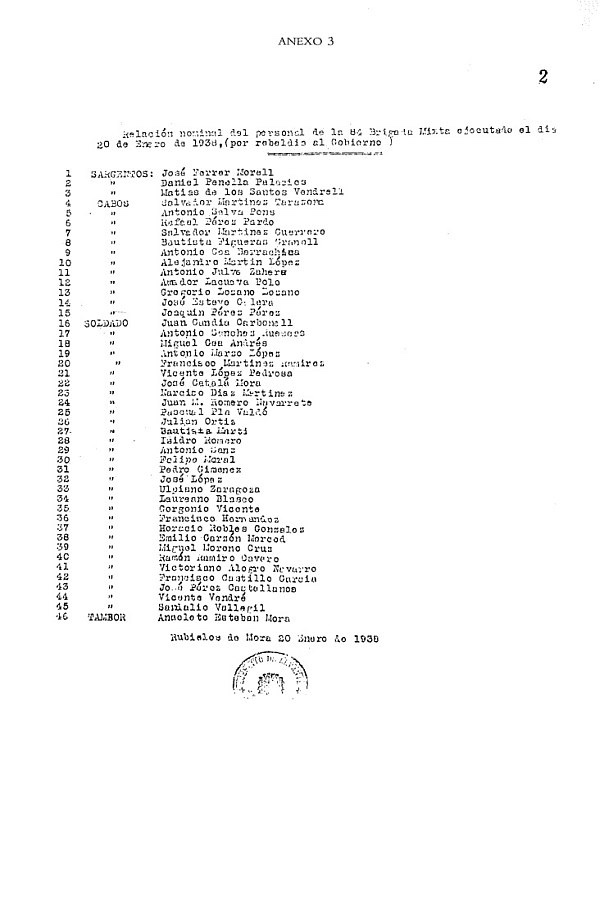 Cerca de trescientos combatientes son detenidos, y de ellos son seleccionados más de medio centenar a los que, sin juicio alguno, fusila en la madrugada siguiente en un paraje de las afueras de Rubielos conocido como Piedras Gordas. Tres sargentos, doce cabos y treinta y un soldados de la unidad fueron masacrados por orden de su propio bando doce días después de haber dado a la República su mayor triunfo de toda la guerra.