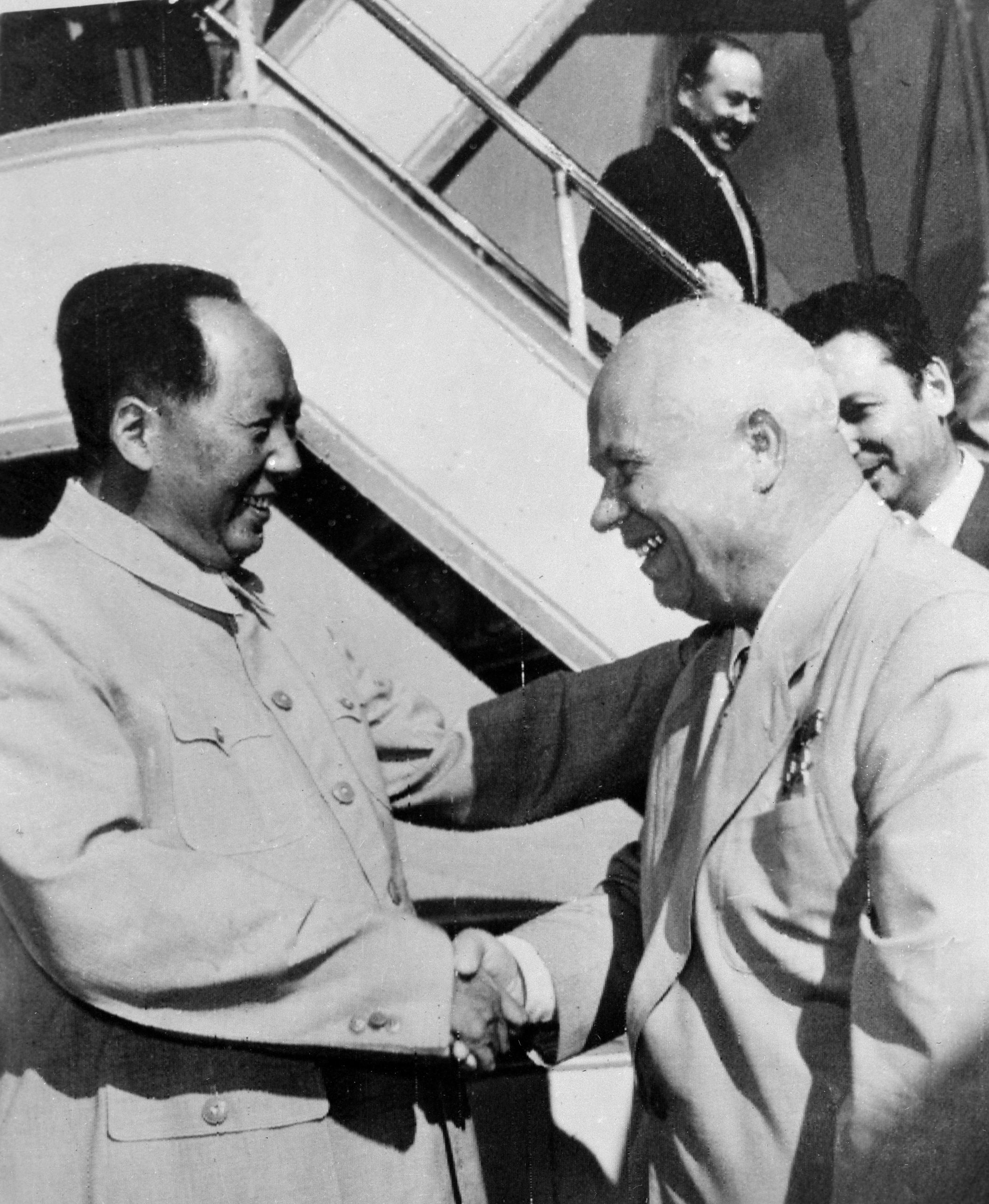 El partido que nos ocupa estuvo tutelado en sus orígenes por la Unión Soviética de Stalin, la versión más siniestra del comunismo soviético. De hecho, la ruptura por parte del nuevo líder soviético (pero viejo e implacable estalinista) Nikita Jrushchov de las amarras del estalinismo (XX Congreso del Partido, 1956) está en el origen del cisma entre los dos grandes partidos comunistas: el soviético y el chino. Los discípulos eran ya más ortodoxos que los maestros.