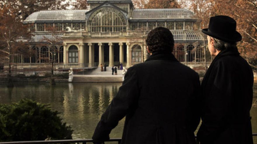 Ya fuera, uno podría dirigirse hacia cualquier parte. Podría bajar por la Cuesta de Moyano y pensar que nada le tiene que envidiar a los buquinistas de la orilla izquierda del Sena. Contemplar al Jardín Botánico, bordear el Museo del Prado y llegar hasta Neptuno, con el Palace y el Ritz a cada extremo, centenarios y enfrentados, igual que si fuesen las sedes de dos temibles gánsteres que pelean en las sombras por el dominio de la ciudad. También podría pensarse en el increíble triángulo de arte que forman el Thyssen, el Reina Sofía y el mismo Prado, tan juntitos. O seguir en dirección Cibeles, la otra gran diosa de esa zona de Madrid, tan bien recogida entre el Banco de España y Correos, al que los castizos solían llamar Nuestra Señora de las Telecomunicaciones. Podría subir después hacia la Puerta de Alcalá y volver a ver allí el viejo parque, a lo lejos. Y recordar Las noches del Buen Retiro, por ejemplo. O callejear en dirección a los Jerónimos y toparse con el antiguo Real Madrid, que hoy es la COPE. Podría pensarse que nada de eso tiene algo que envidiar al Boul’Mich parisino o al Covent Garden londinense. Y que incluso se mantiene cerca de las grandes zonas de la capital romana. Para un amante de Madrid, la noticia de que al fin haya sido reconocido el Patrimonio Mundial que allí se guarda sólo puede ser recibida con alegría. Pero José Luis Garci no necesita rehacer todo ese recorrido para caminarlo con la mente. Mientras se desvía y se introduce en Cortes, subiendo hacia el Congreso y quién sabe si también al Ateneo, piensa en que nada de eso podría desligarse del Retiro y en que él podría haber sido corresponsal allí. Quién sabe. Ya hay demasiados reporteros de guerra, dice. Lo maravilloso habría sido ser reportero de paz en el Retiro.