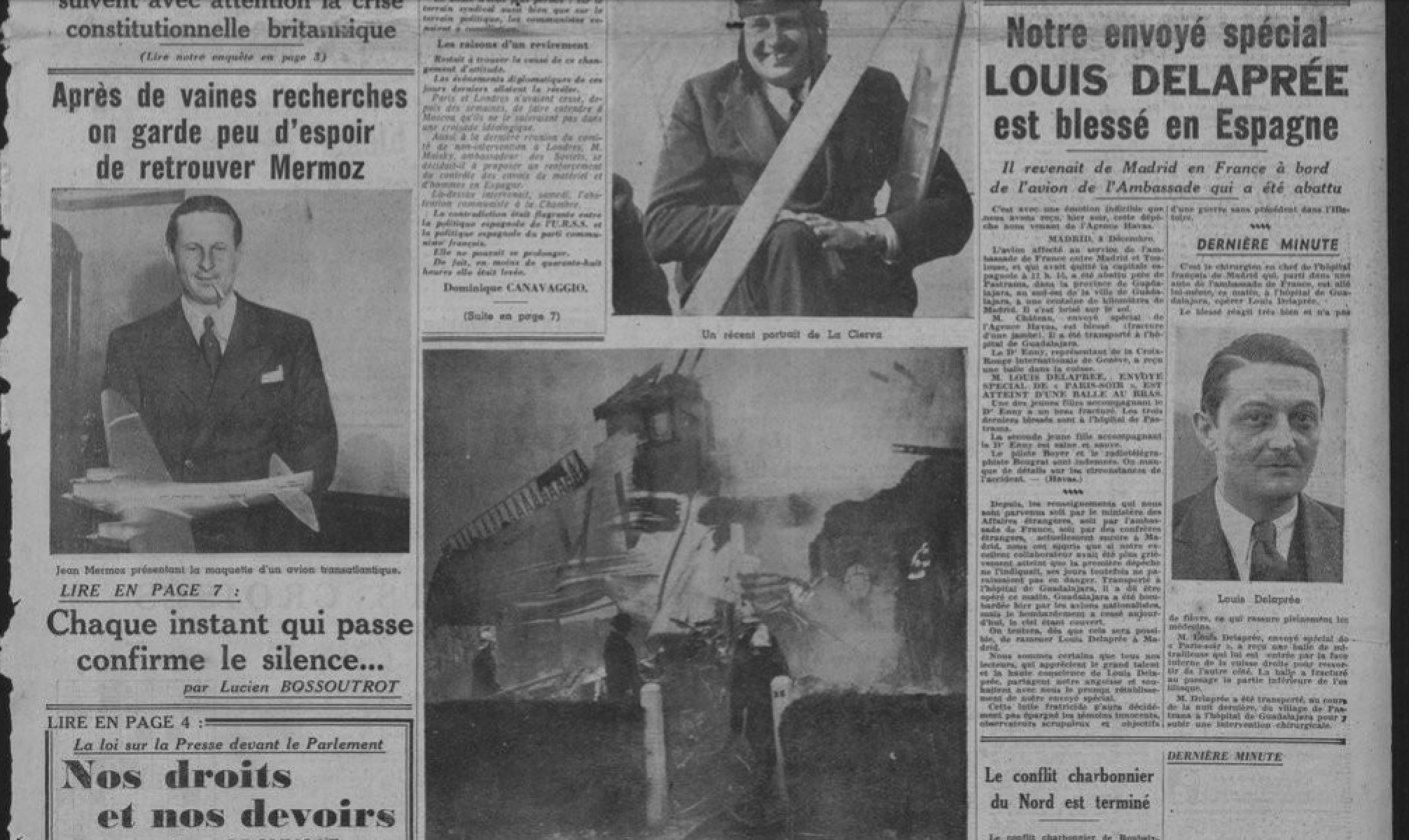 También resultó herido en el derribo del avión el periodista francés Louis Delaprée, corresponsal de "Paris-Soir", alcanzado en la ingle y en el vientre por las balas del avión agresor. A consecuencia de estas heridas, Delaprée falleció tres días después en el Hospital de San Luis de los Franceses, en la madrileña calle Claudio Coello, 32. Tenía 34 años y dejaba viuda y cuatro hijos.