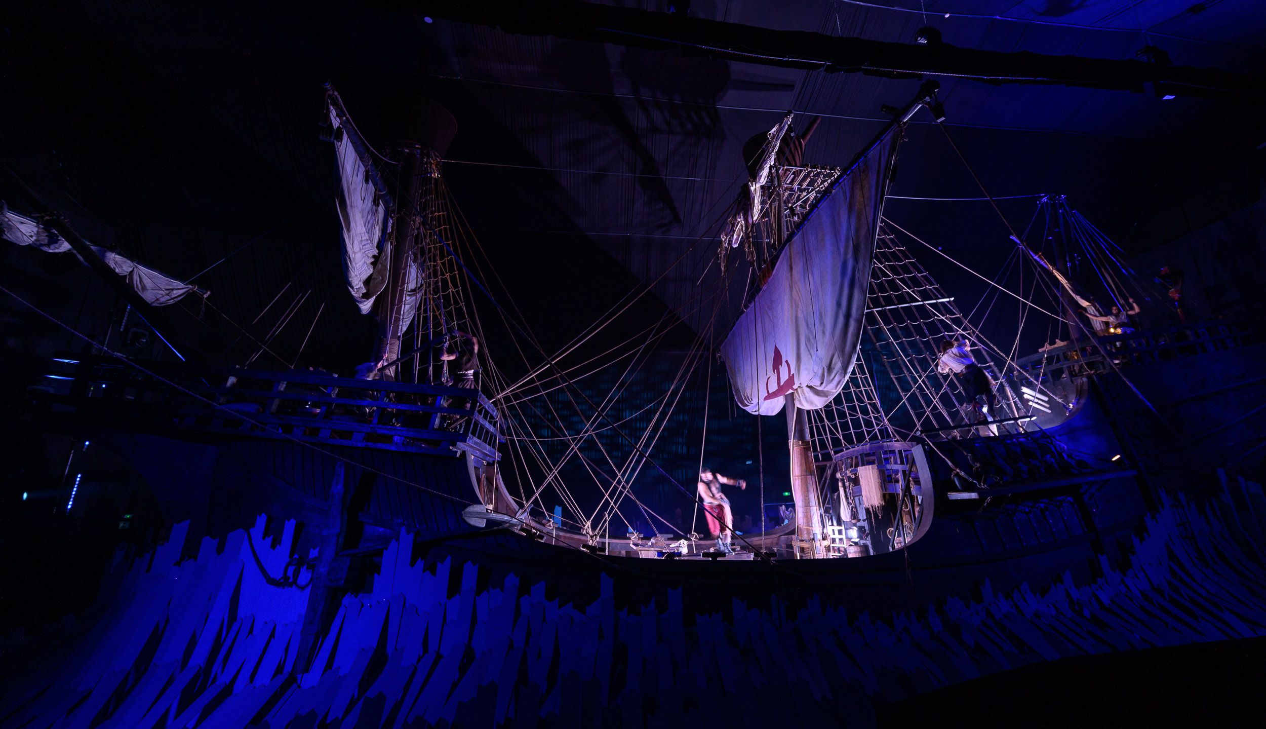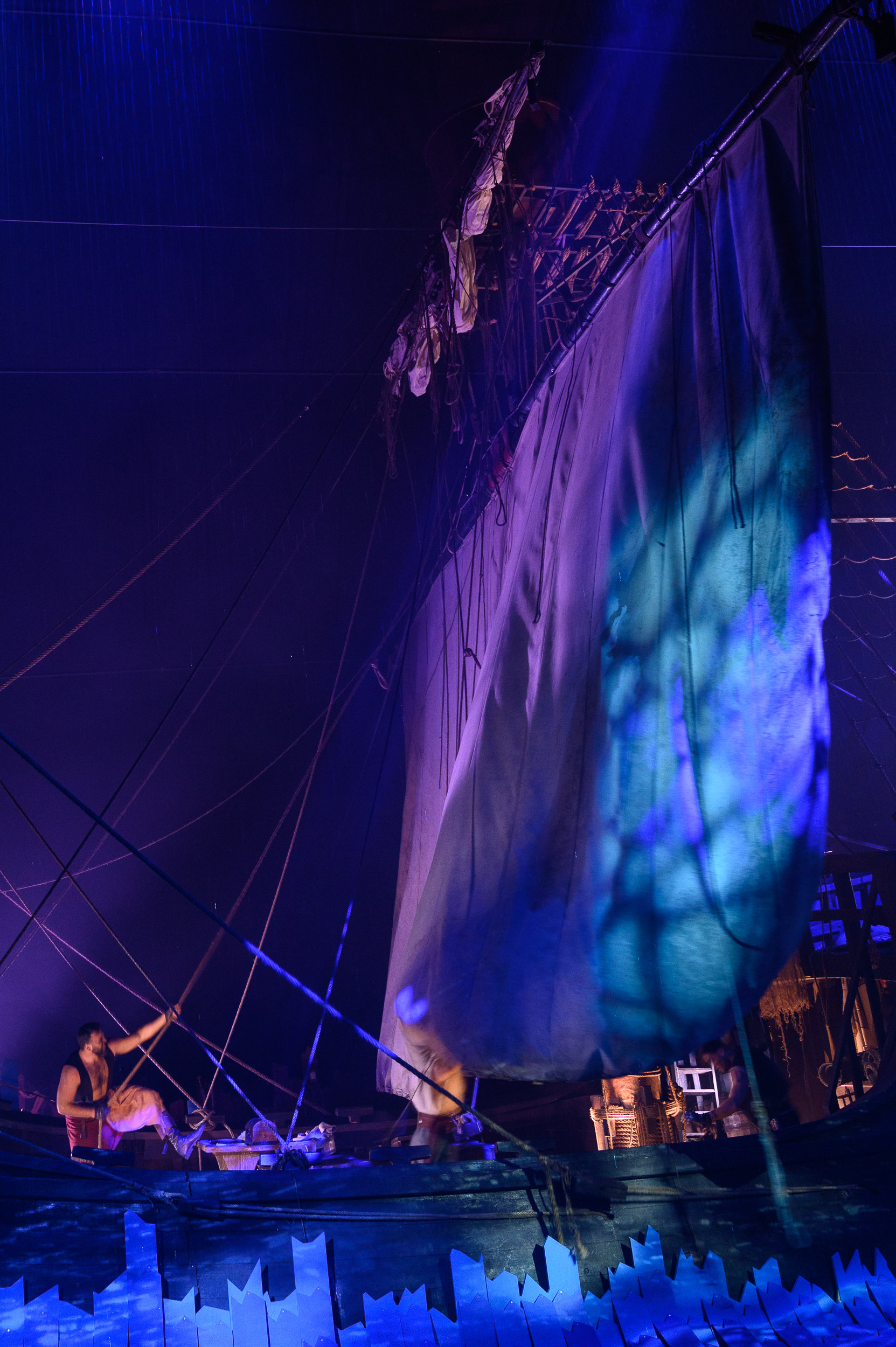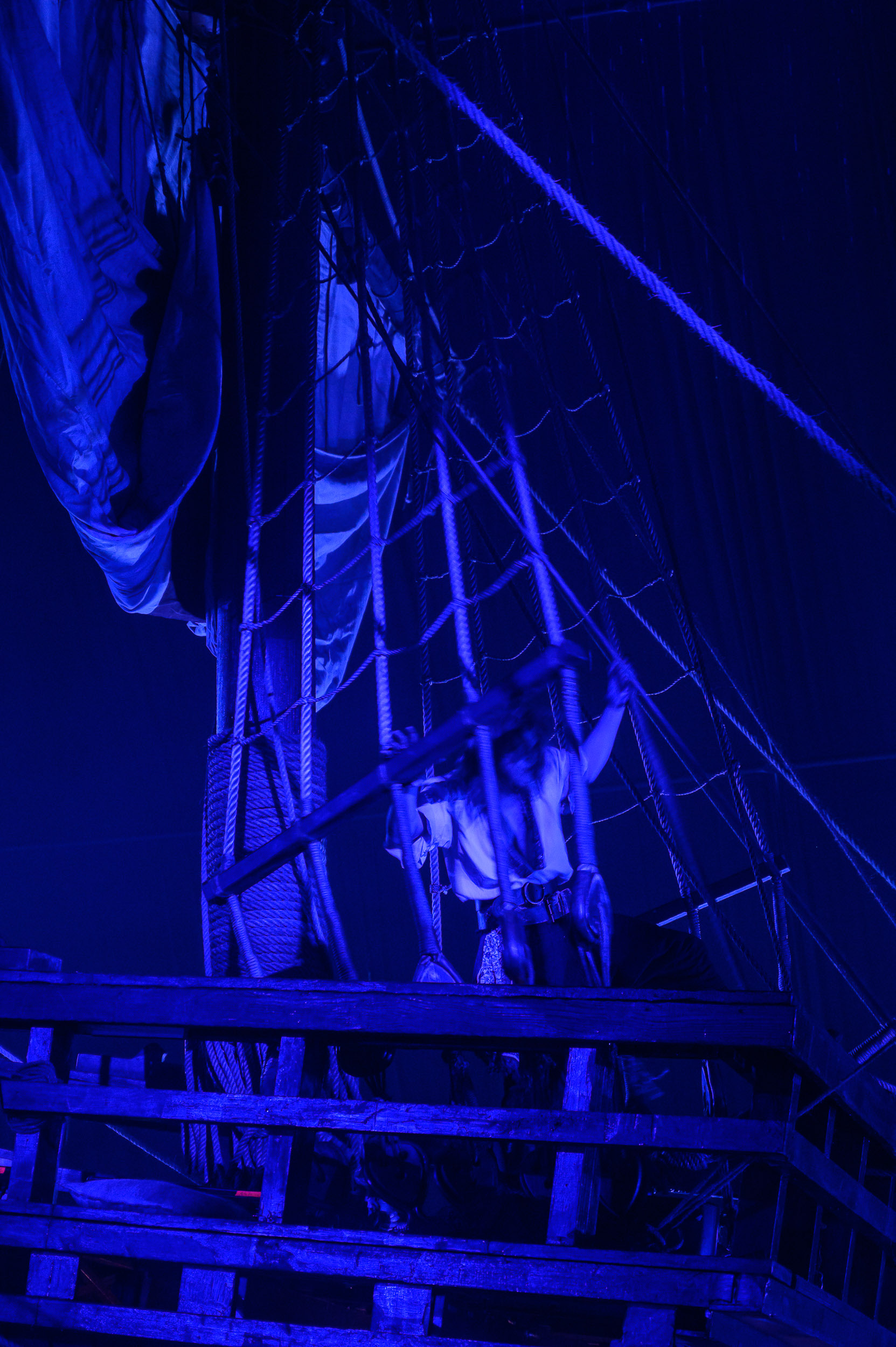 Un momento de la representación, con los marineros luchando contra la tormenta.