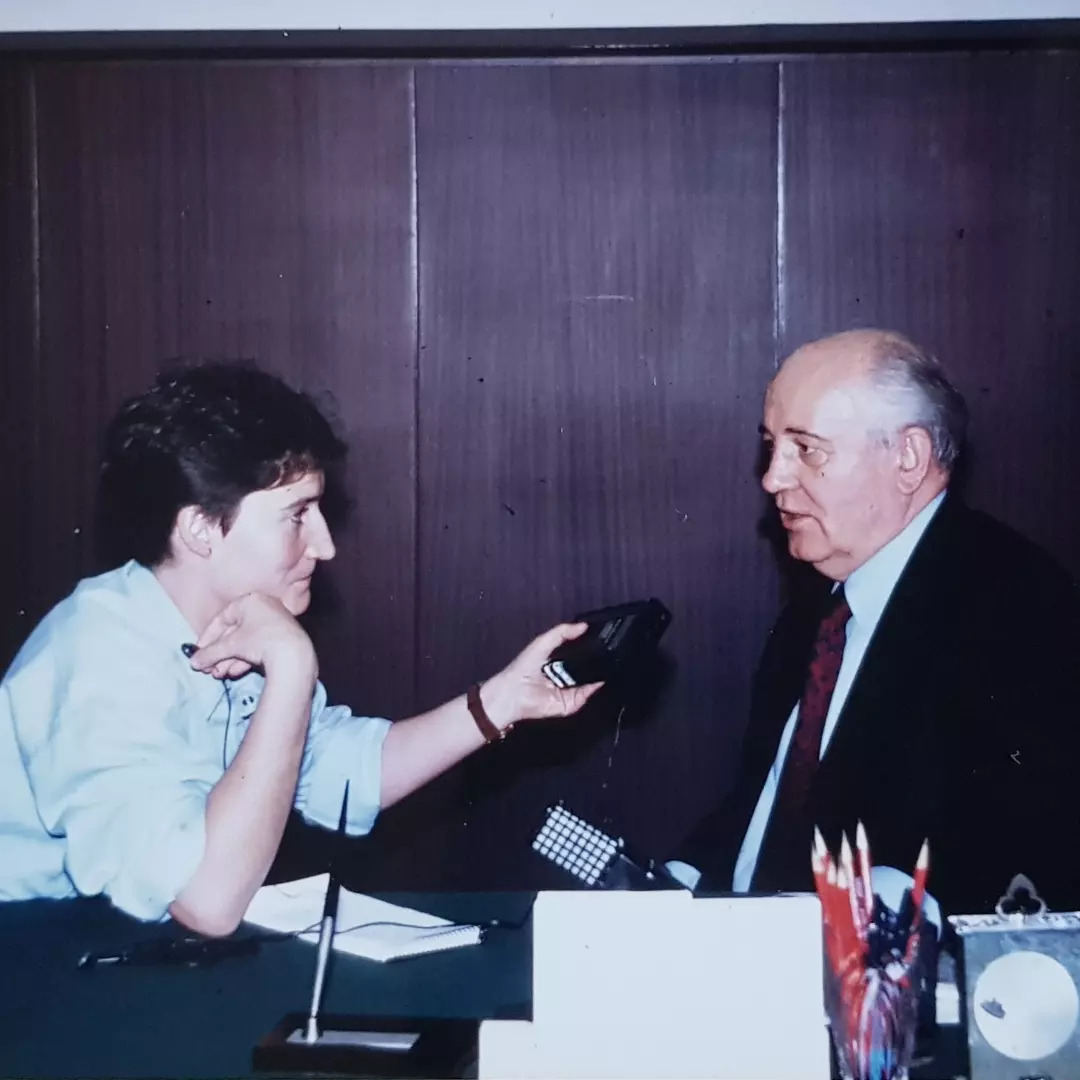 Fue en Moscú donde conocí a Eva Orúe, por aquel entonces corresponsal de Onda Cero Radio en la capital rusa. Rápido decidimos aunar fuerzas y escribir un libro sobre lo que estábamos viviendo. Enseguida me dejé convencer de que había que basarlo en conversaciones con los personajes más relevantes del momento y entre ellos, aunque mediaba ya 1994, no podía faltar Gorbachov.