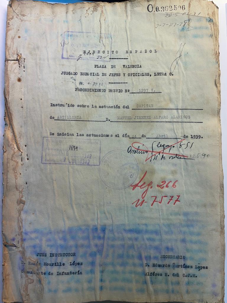 "Diligencias previas contra Manuel Jiménez-Alfaro y Alaminos". AGHD, Sumario 1297, 1939, Valencia, Caja 17211.