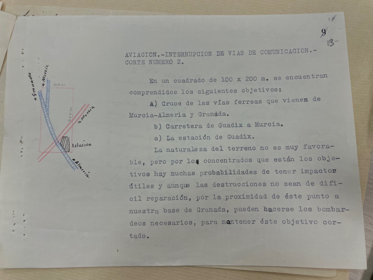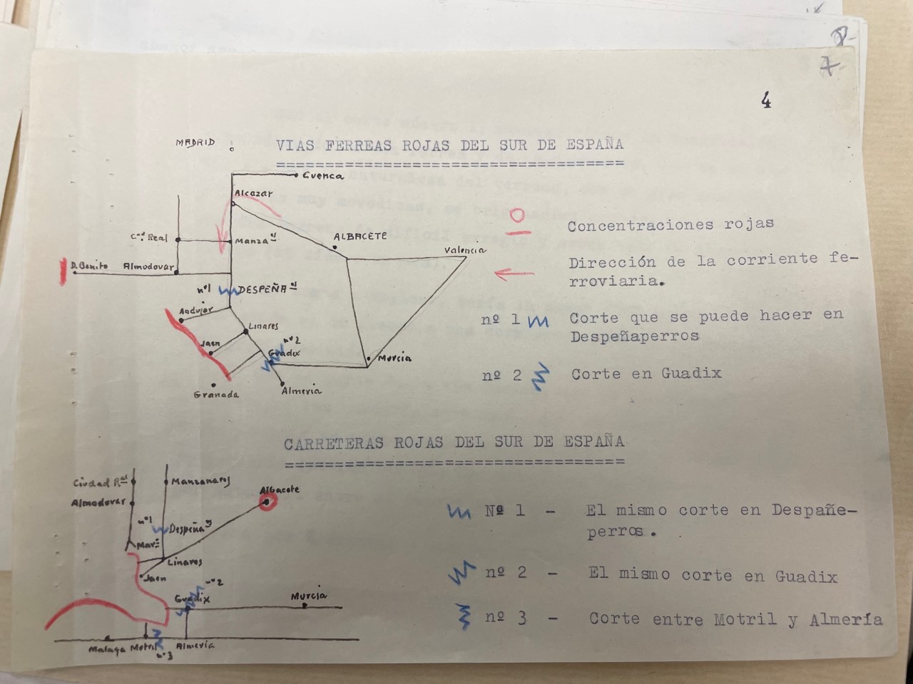El informe contiene dos croquis: uno para los dos cortes de ferrocarril propuestos y otro para los tres cortes de carretera. Existen también dos planos esquemáticos del área de intervención en Despeñaperros y en Guadix, con sendos "cuadrados de bombardeo" de 200x250 m. en el primer caso y de 100x200 m. en el segundo. Como se ve, se trata de objetivos muy precisos, "quirúrgicos" puede decirse, con el fin de garantizar el éxito del ataque.