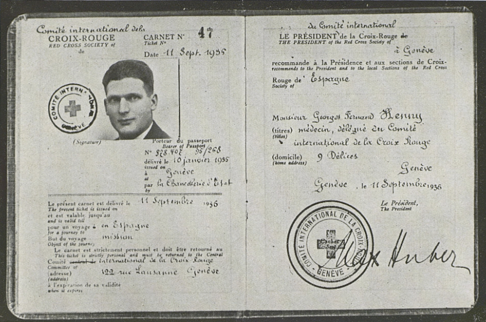 El joven doctor Henny asume muy pronto su papel frente a los desastres de la guerra. El 30 de septiembre reclama al CICR en Ginebra que haga "una enérgica y rápida intervención ante los gobiernos de Burgos y de Valladolid [sic] para que la población civil y los prisioneros de guerra no sean fusilados y para que no sean bombardeadas las ciudades abiertas donde son víctimas las mujeres y los niños". (8)