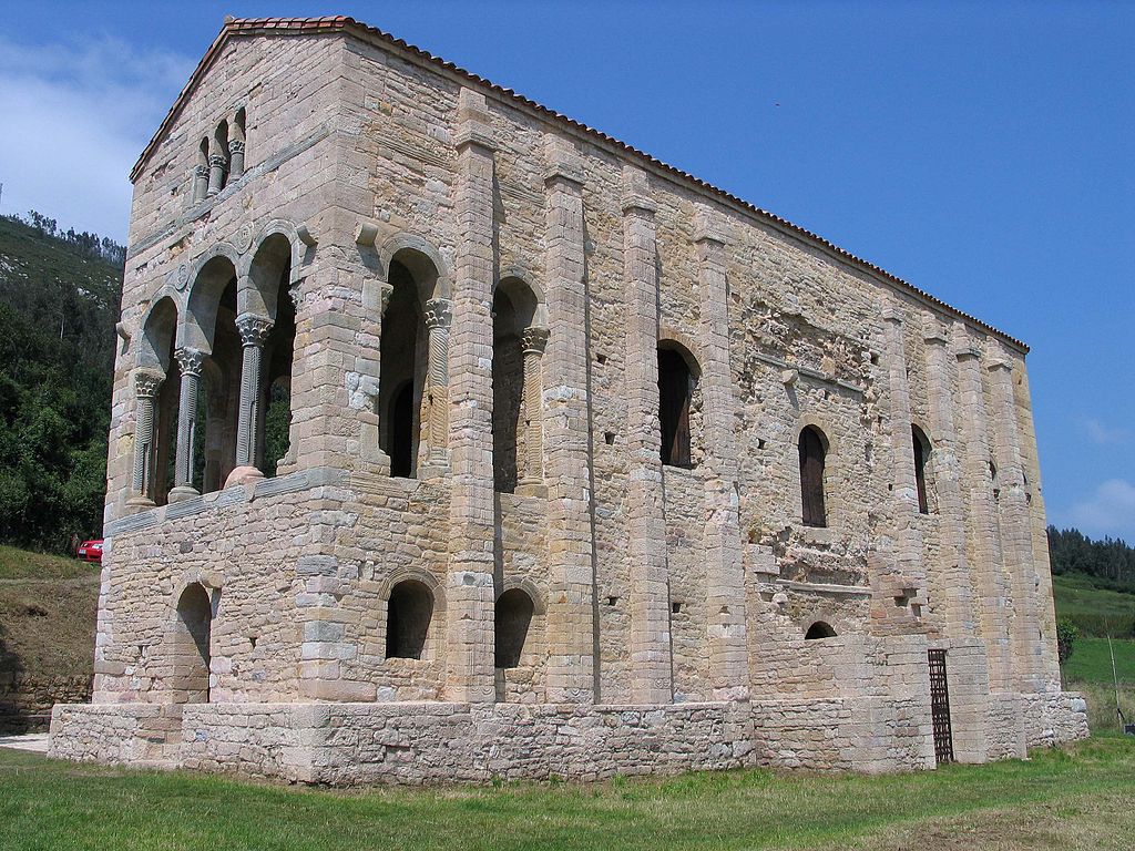 Ejemplo de arquitectura prerrománica, Santa María del Naranco, a las afueras de Oviedo, fue en su origen un edificio civil convertido posteriormente en iglesia de culto a la Virgen. Su planta baja consta de una sala rectangular con bóveda de cañón sobre arcos fajones. Cuenta con arquerías para sostener la bóveda y permitir abrir ventanas.