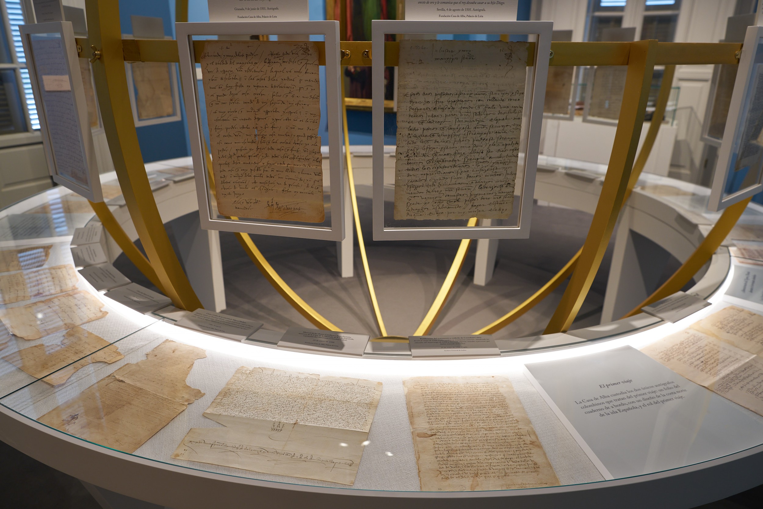 El eje central de la exposición son los Autógrafos de Cristóbal Colón, custodiados en el Palacio de Liria, que son exhibidos al público por primera vez al completo. No solo es el mayor conjunto documental, sino el más variado, ya que comprende desde cartas personales, documentos enviados a los Reyes Católicos, pasando por recibos o informes sobre sus viajes y los primeros años de gobierno.
